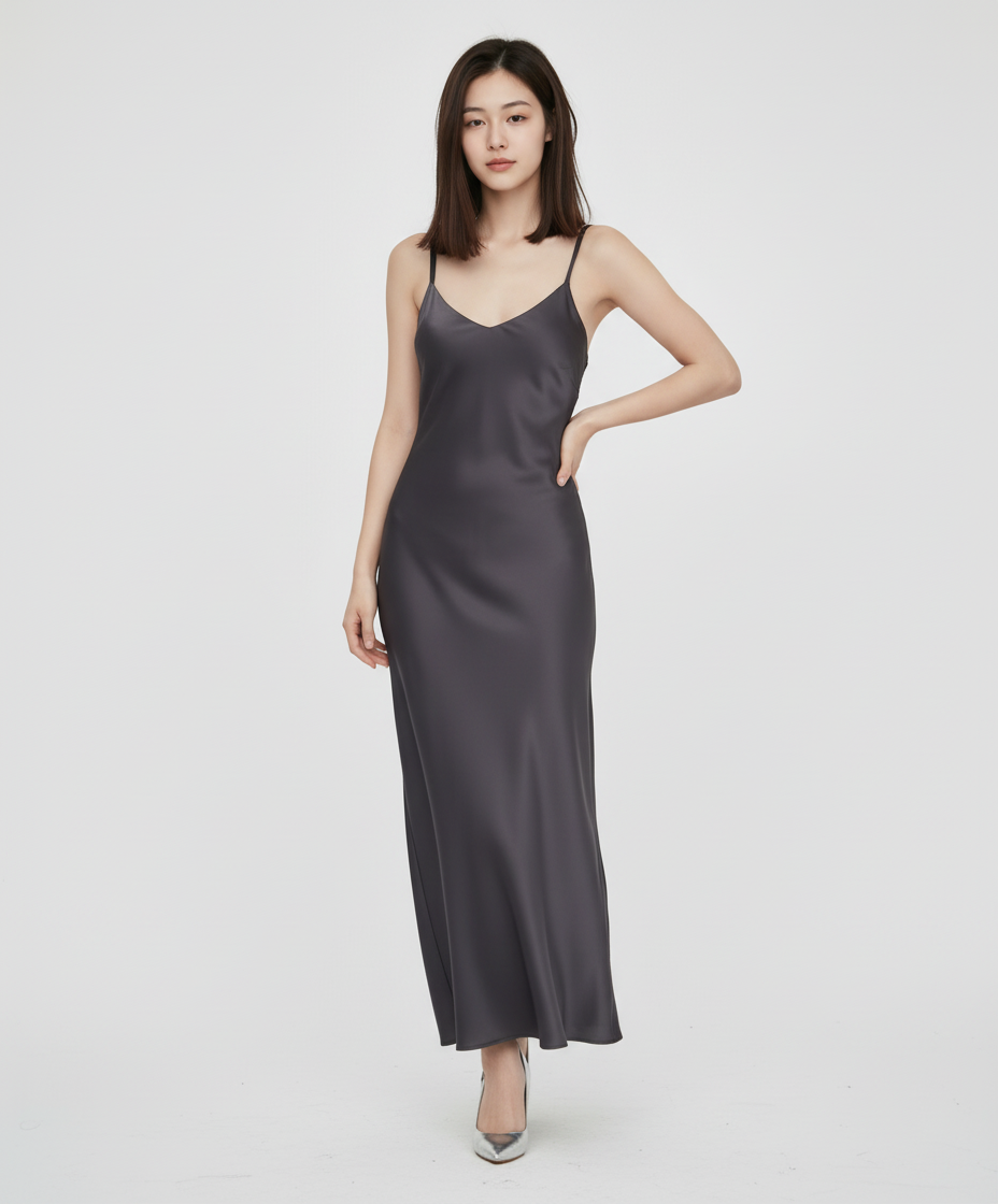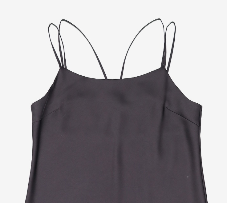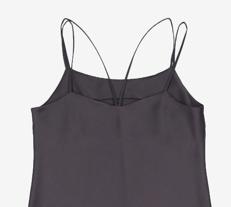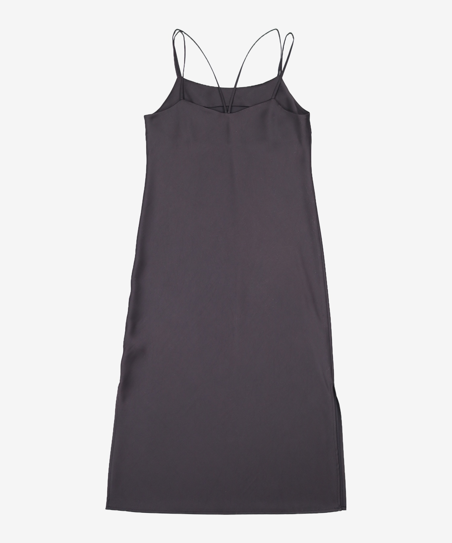 블랙 새틴 슬릿 슬립 원피스 (121371DY45) S
