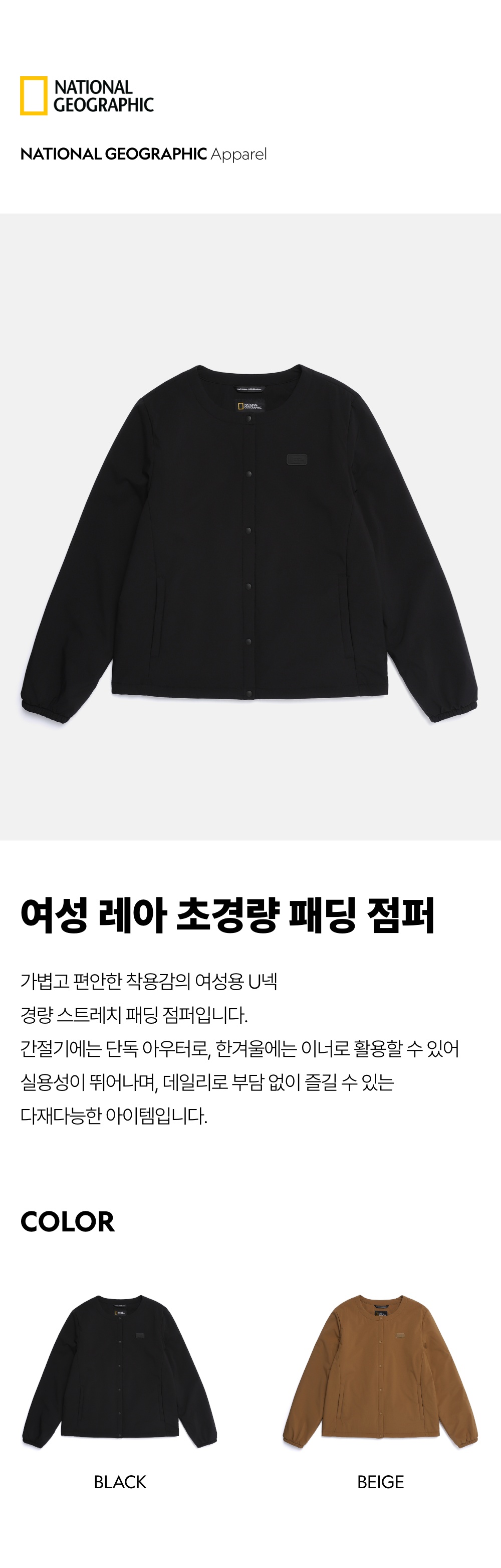 N261WPD010 여성 레아 초경량 패딩 점퍼 BLACK