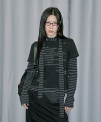 레이어드 스트라이프 머플러 세트 롱 슬리브 - BLACK