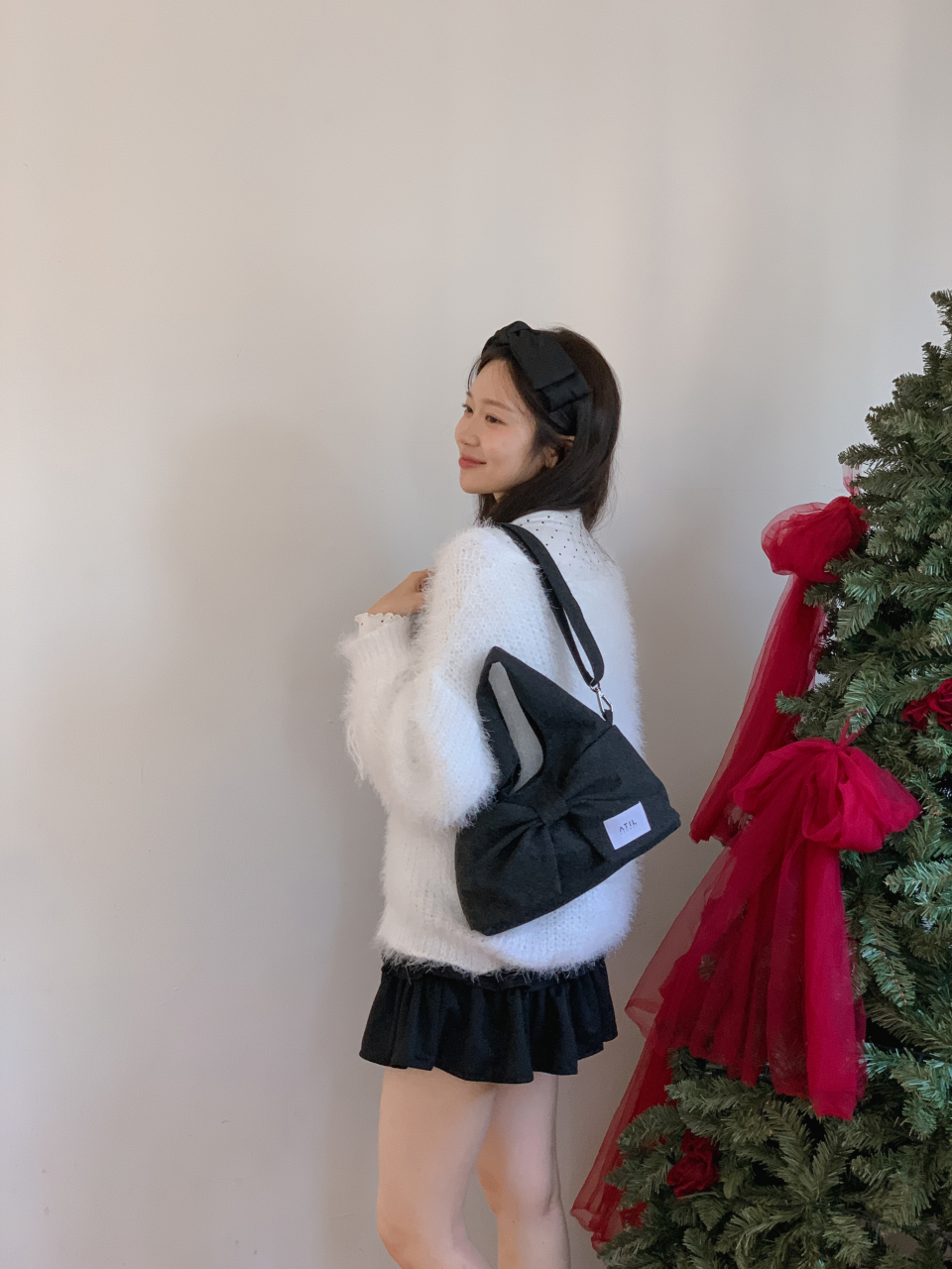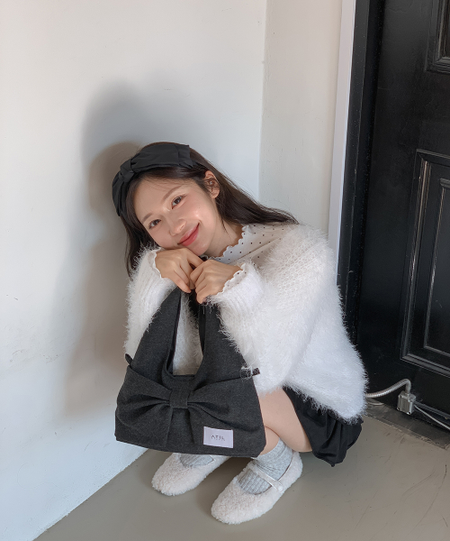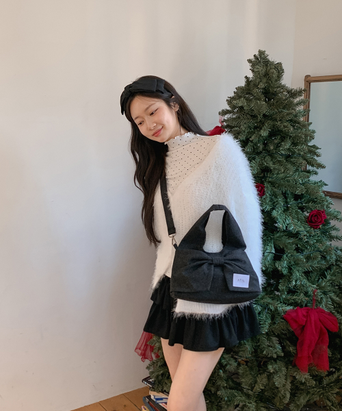 셰리 울 리본 크로스 앤 숄더 클러치 백 _ [블랙]