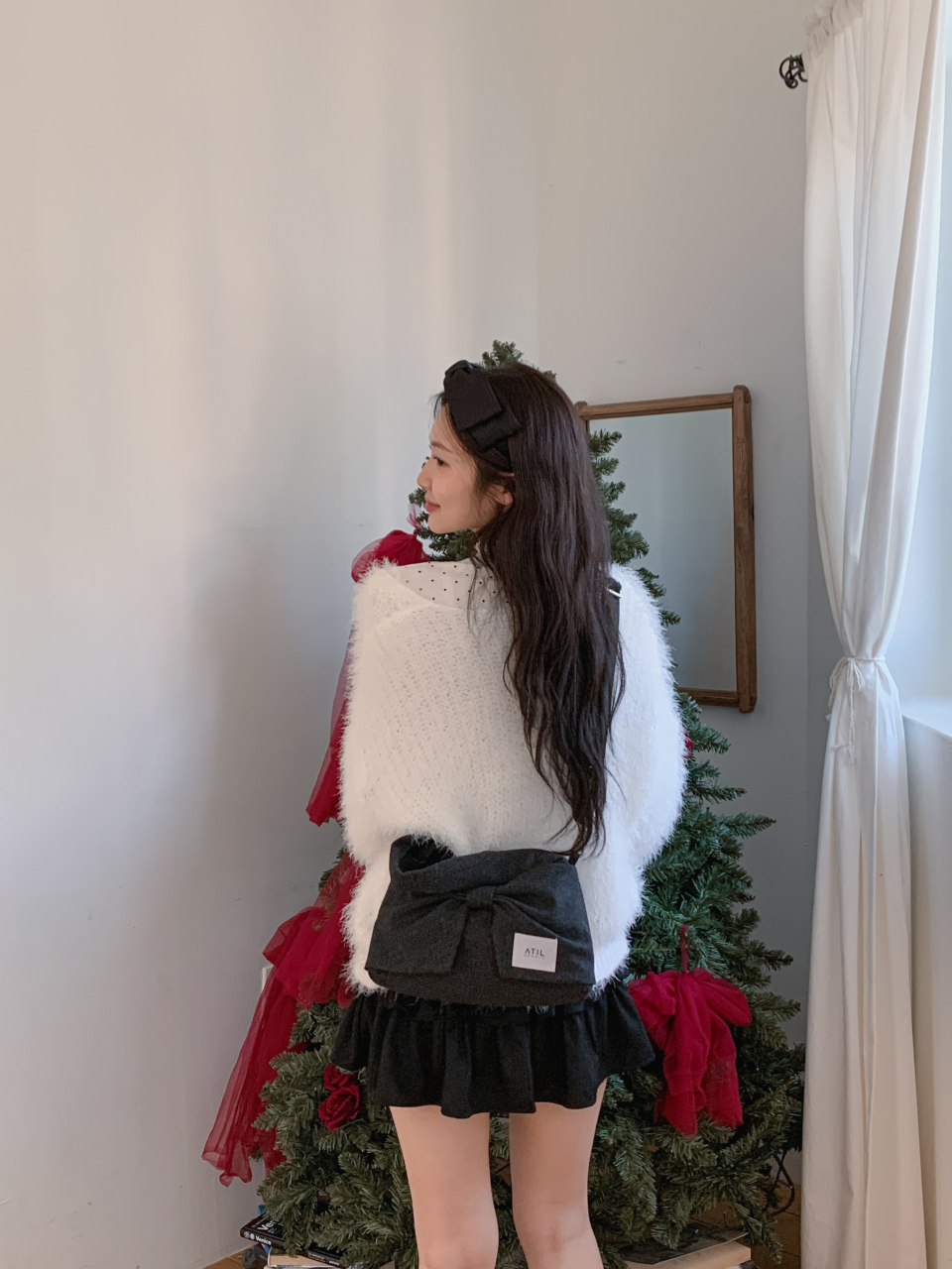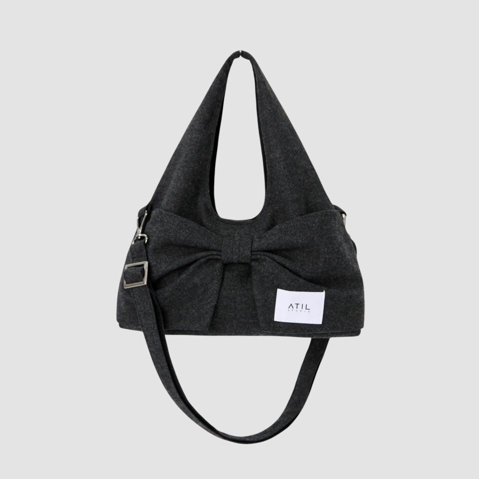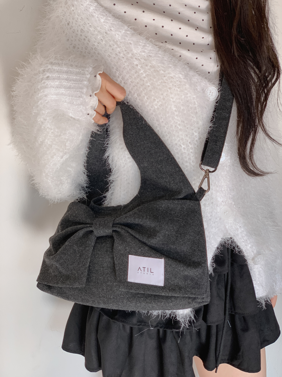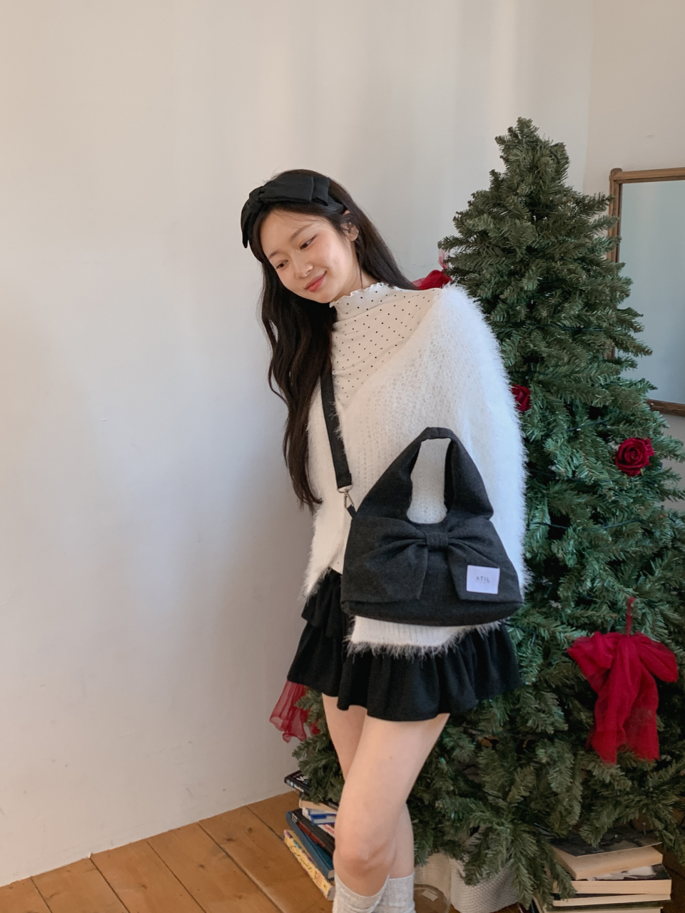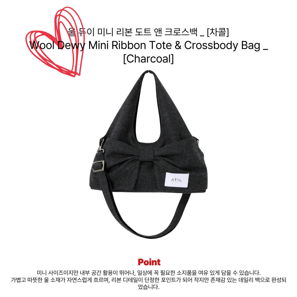 울 듀이 미니 리본 도트 숄더 & 크로스백 _ [차콜]