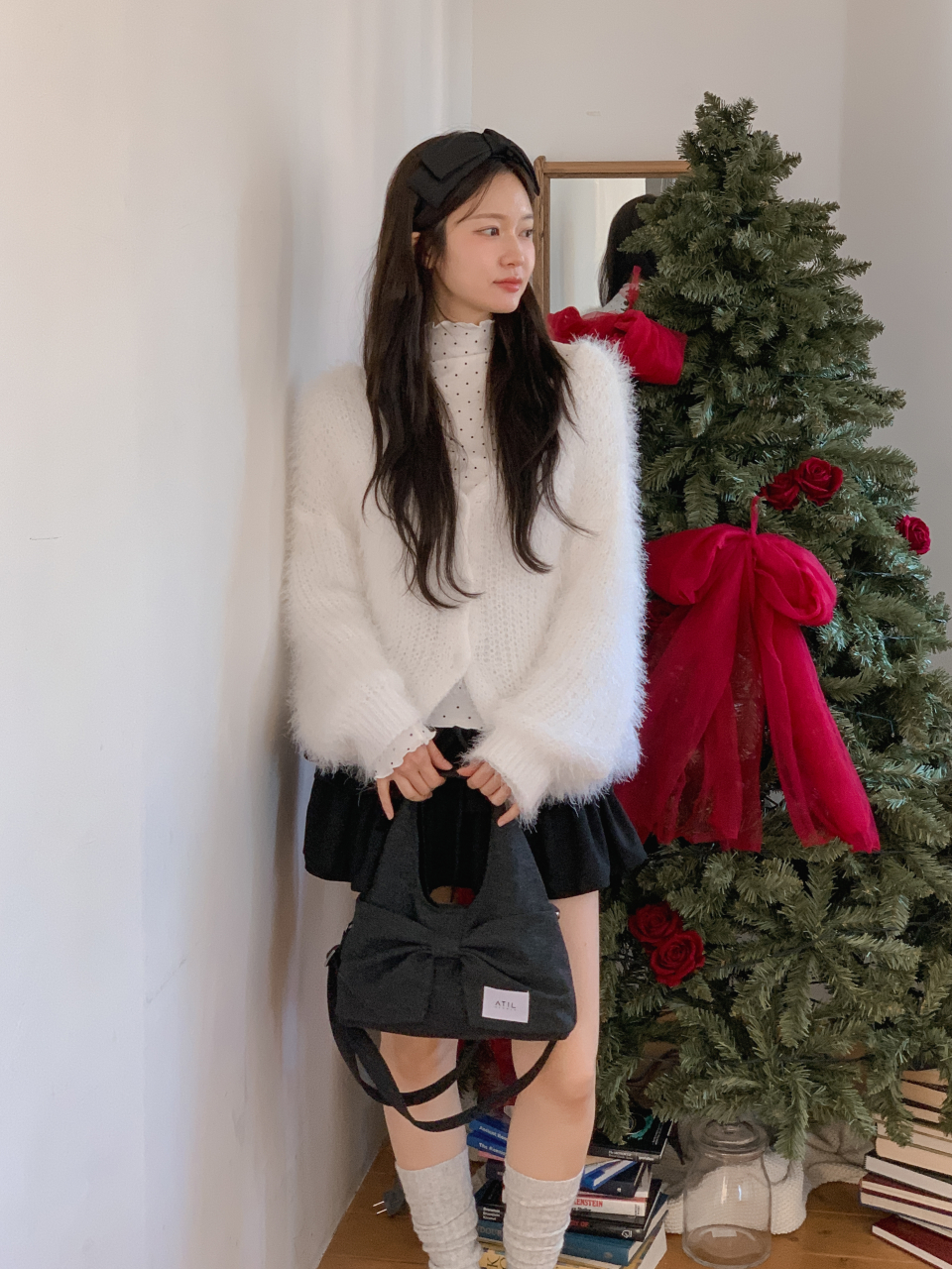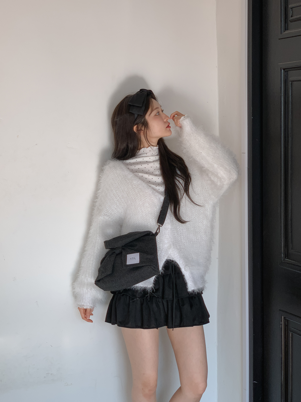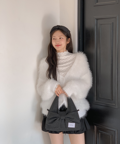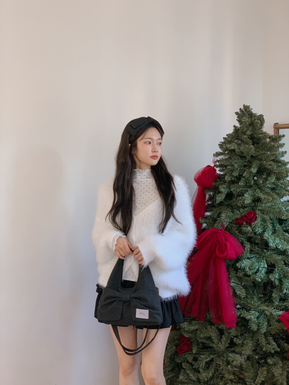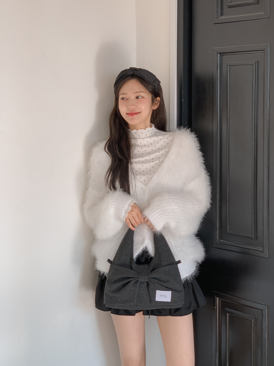 울 듀이 미니 리본 도트 숄더 & 크로스백 _ [차콜]