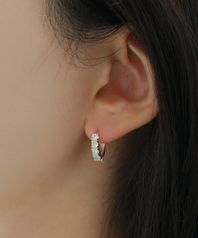 925 실버 테니스 원터치 큐빅 링 귀걸이