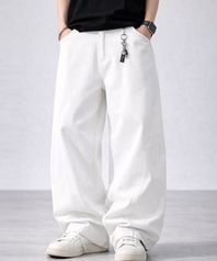 화이트 커브드 절개라인 와이드 코튼 팬츠