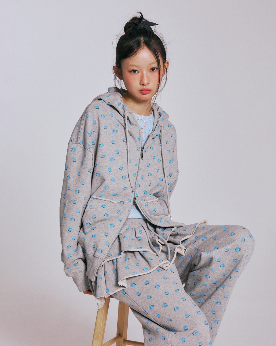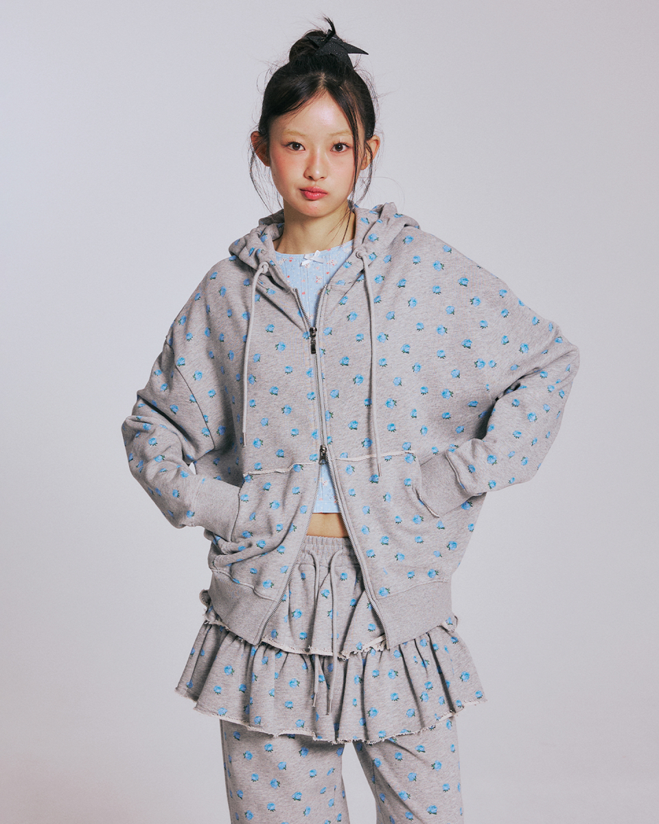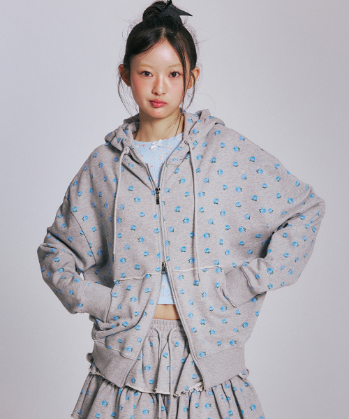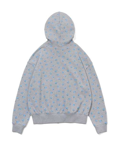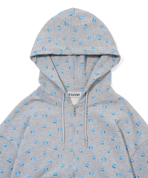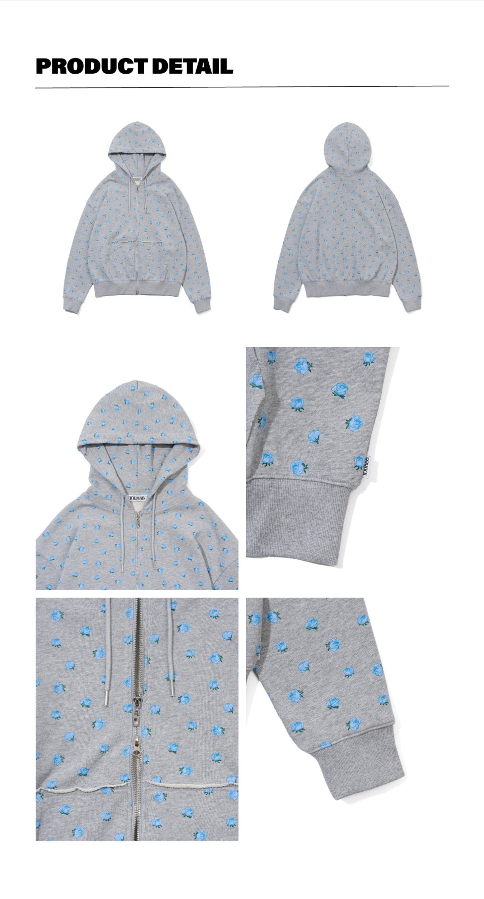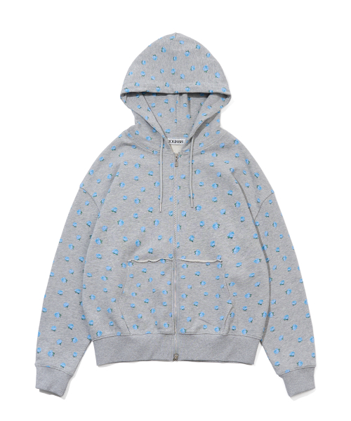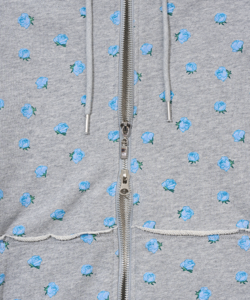 FLOWER PATTERN HOOD ZIP-UP_MELANGE GREY