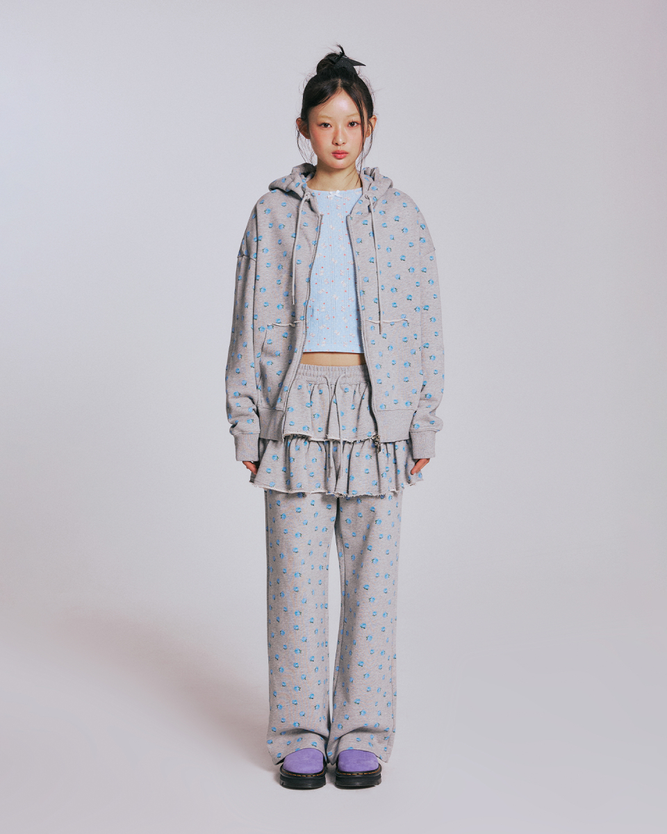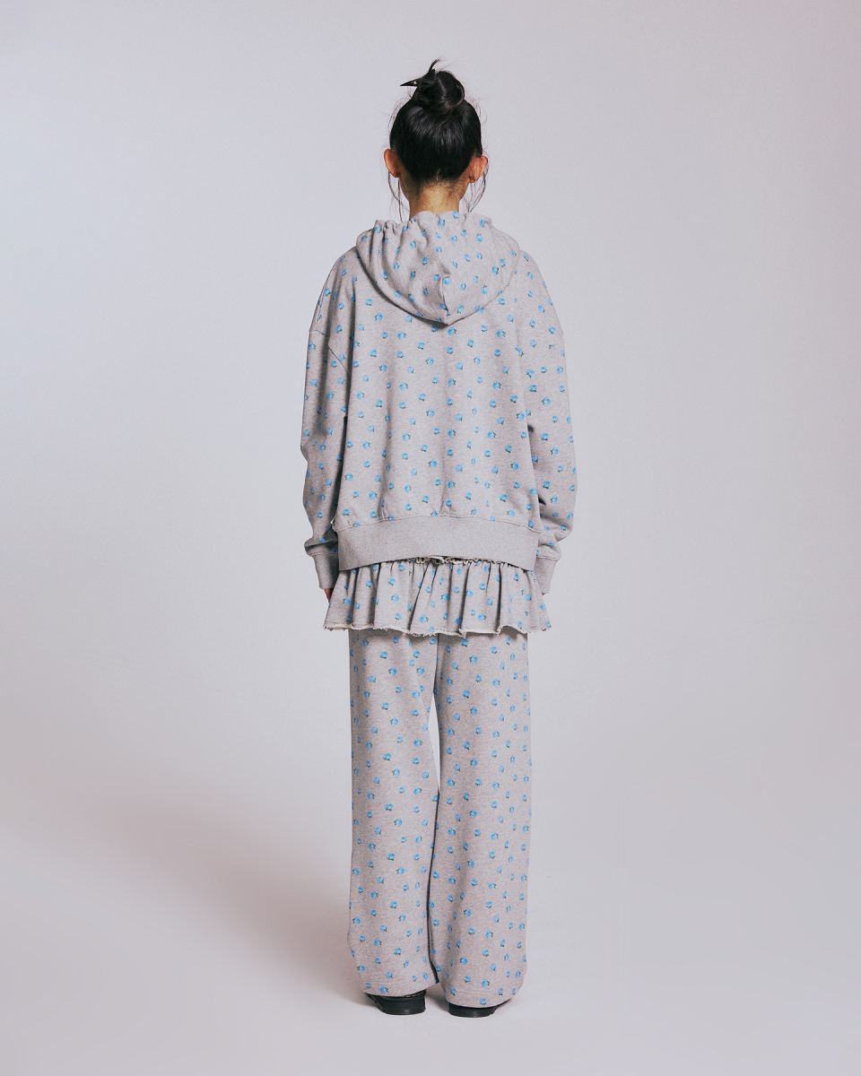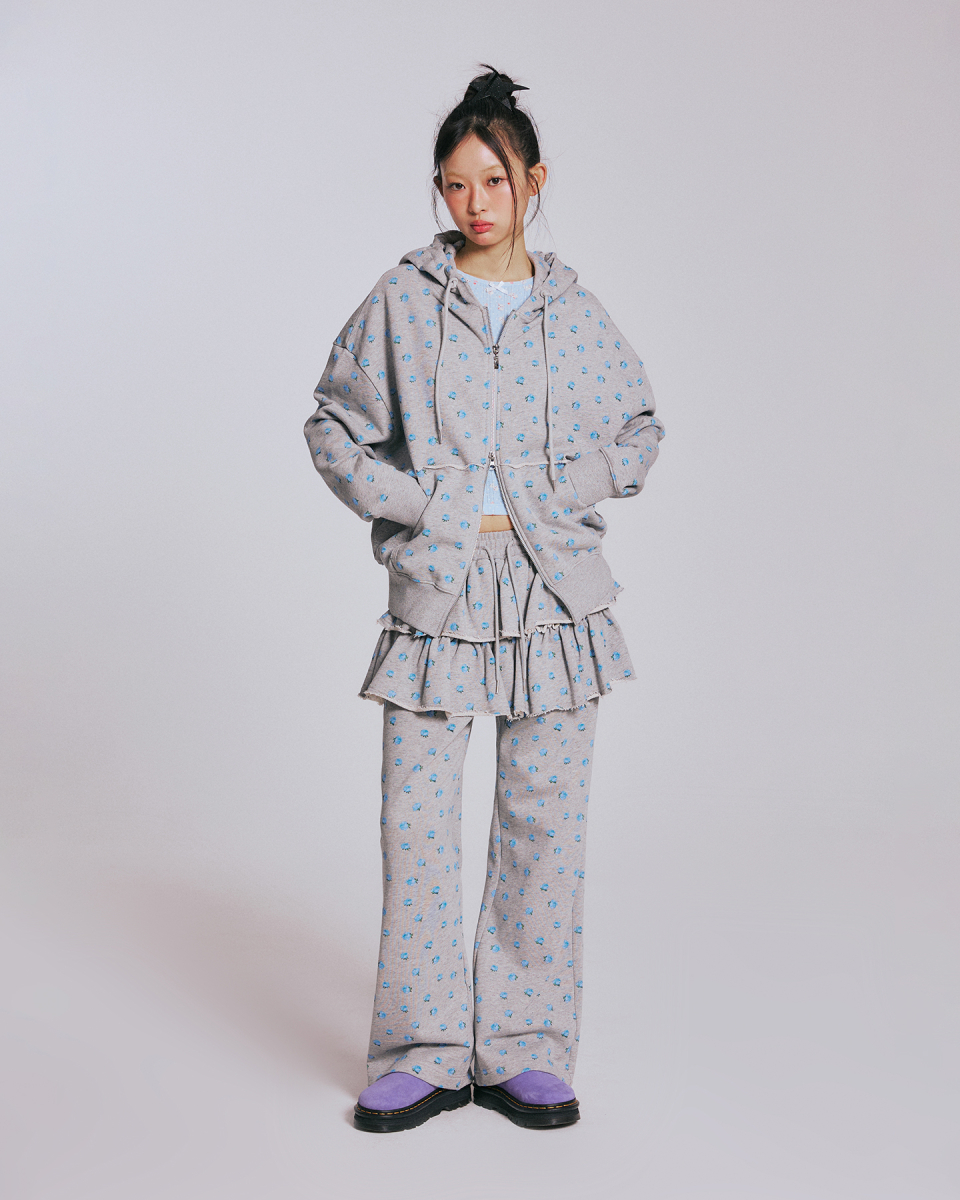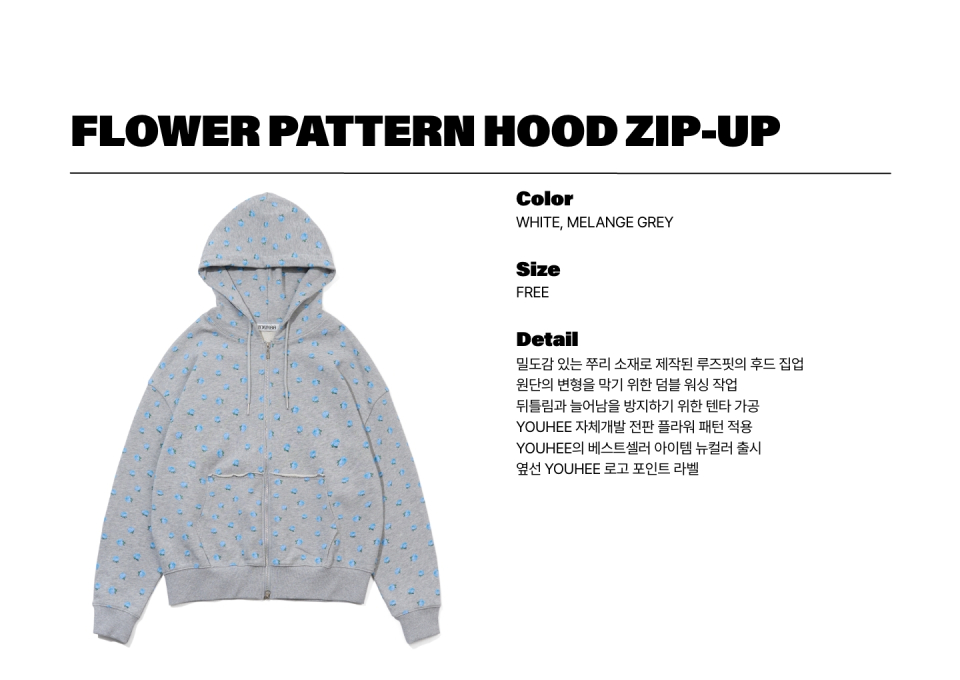 FLOWER PATTERN HOOD ZIP-UP_MELANGE GREY