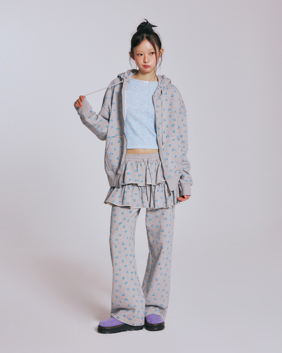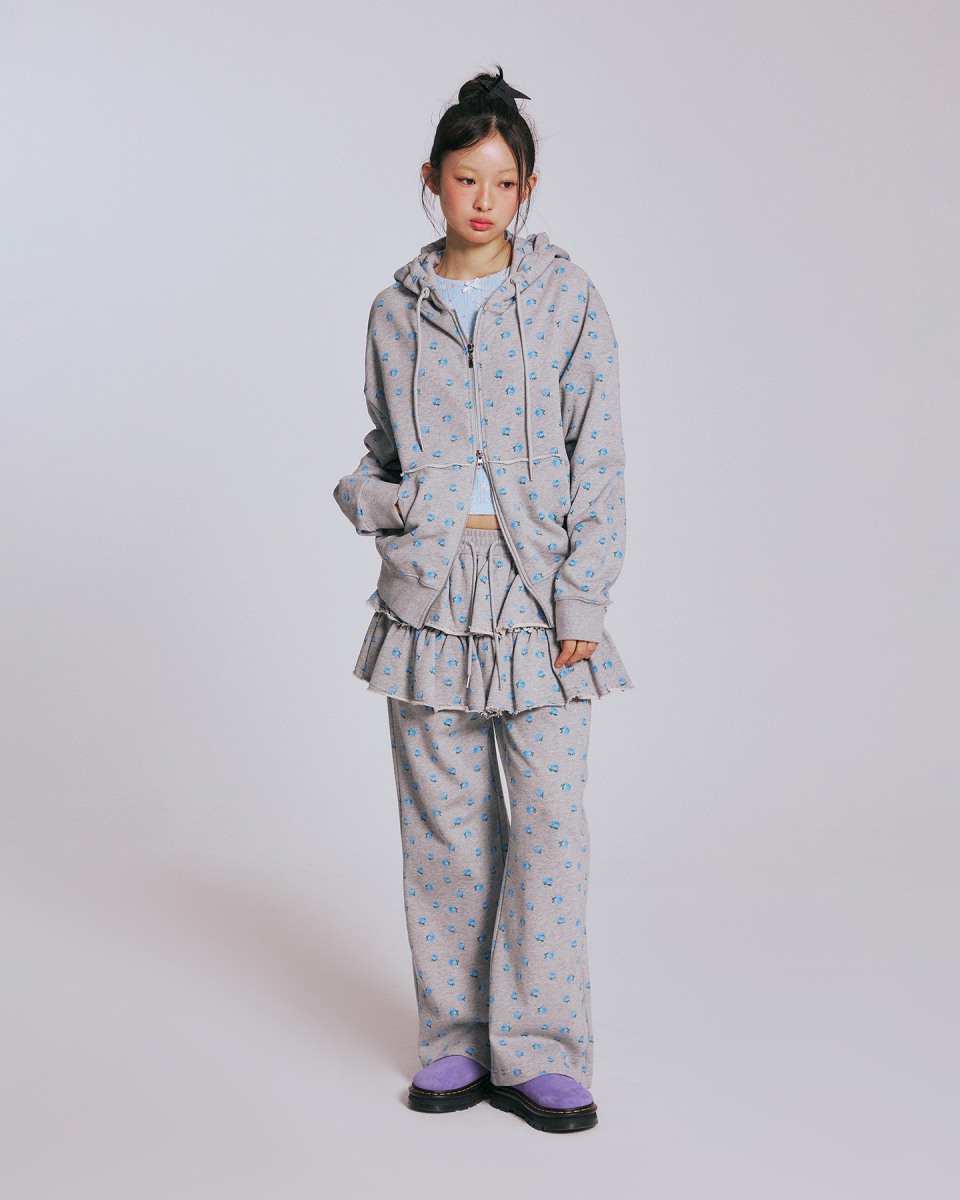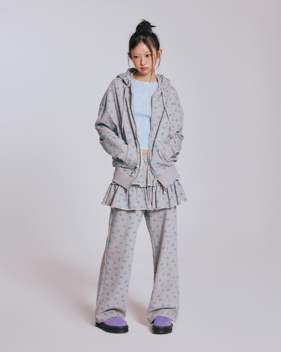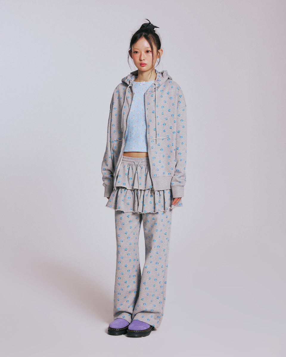 FLOWER PATTERN HOOD ZIP-UP_MELANGE GREY