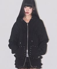 엔젤 자수패치 하이넥 오버핏 후드집업 아이보리