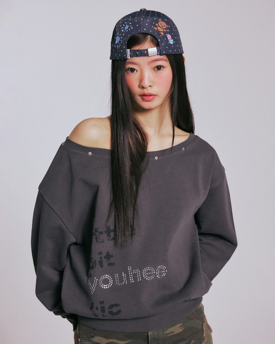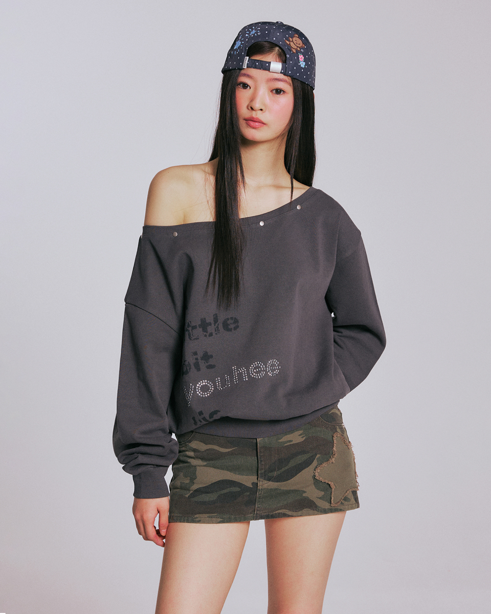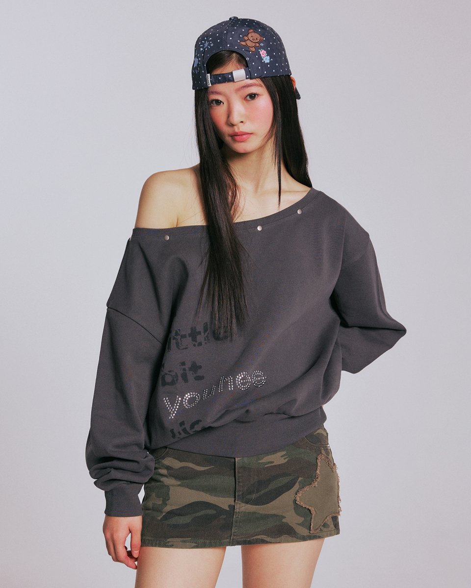 YOUHEETIC HOTFIX OFF-SHOULDER SWEATSHIRTS_CHARCOAL