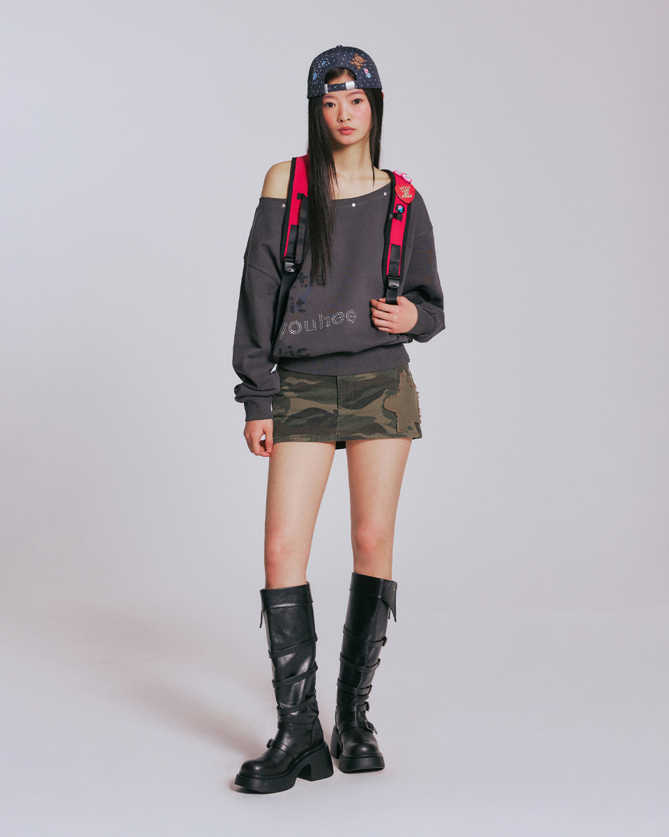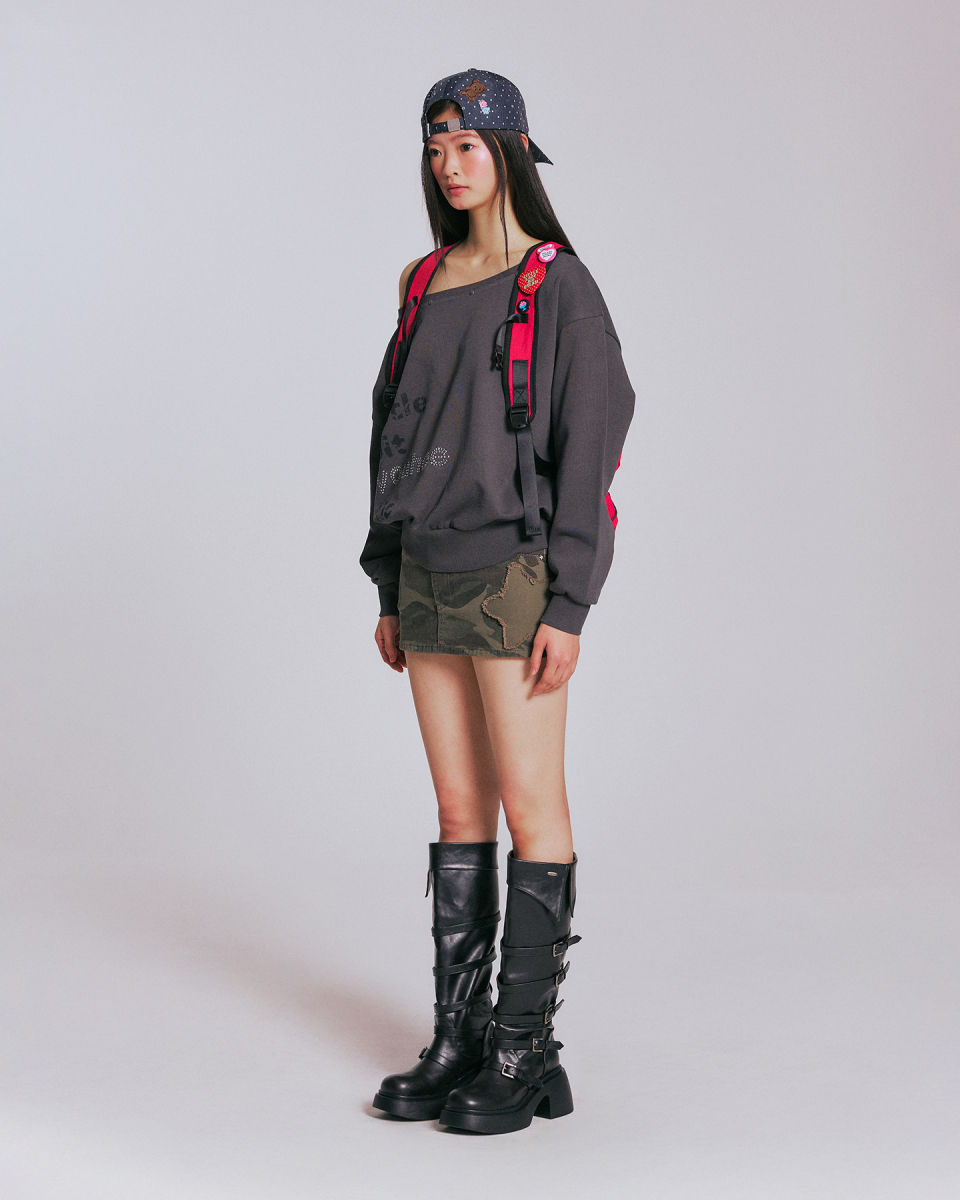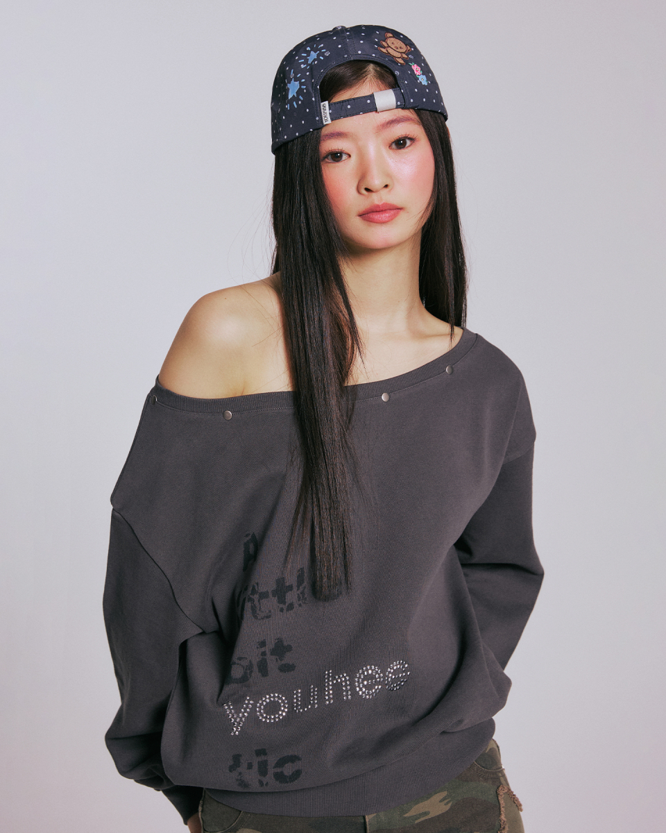 YOUHEETIC HOTFIX OFF-SHOULDER SWEATSHIRTS_CHARCOAL