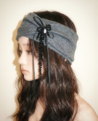 블랙베리 리본 셔링 헤어밴드 다크 그레이