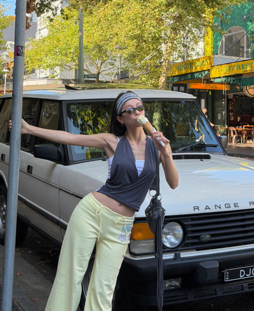 하이키한 바이브로 포인트가 되고, 홀터넥 끈에는 볼드한 비즈(구슬) 디테일로 페미닌한 무드가 돋보입니다.