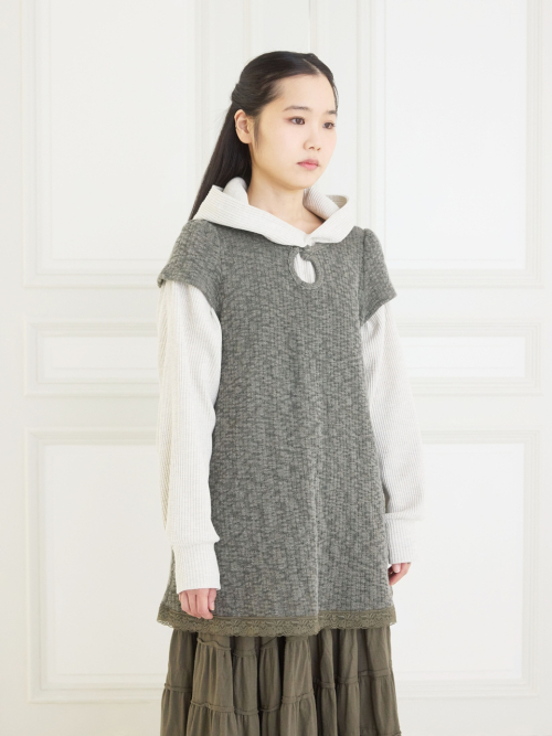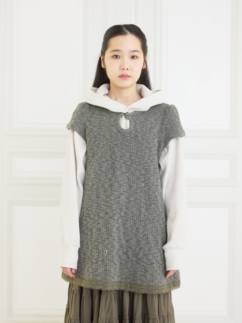 배색된 컬러 레이스로 밑단 디자인 포인트