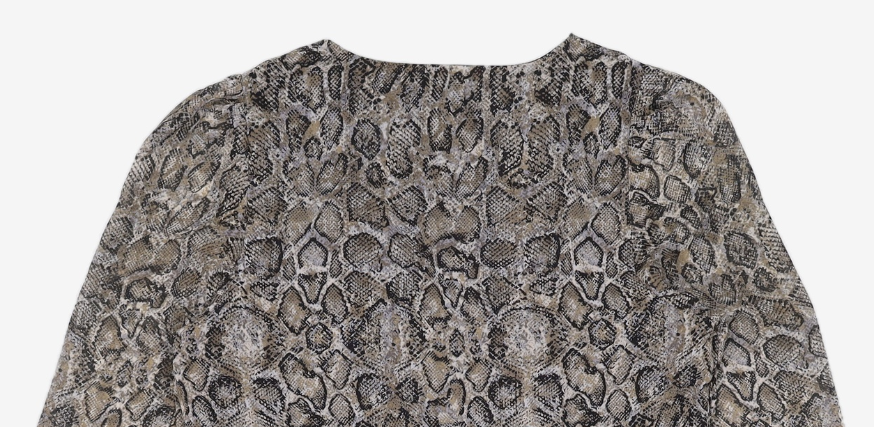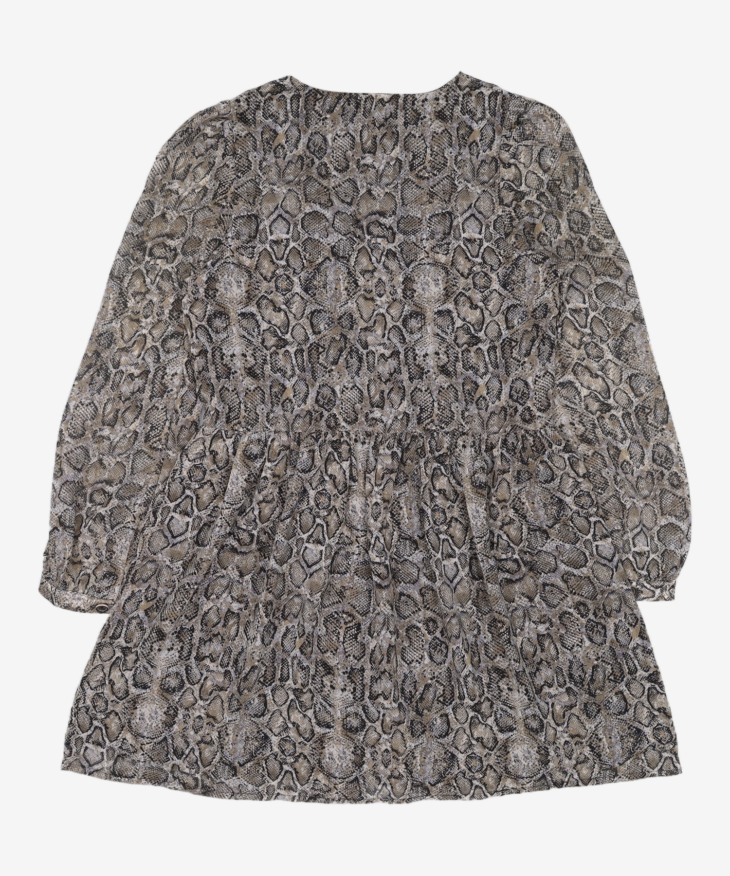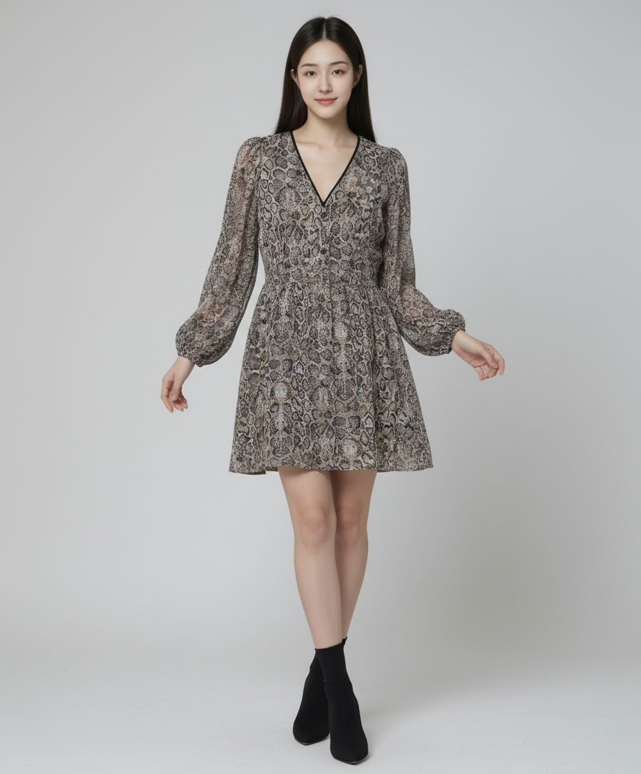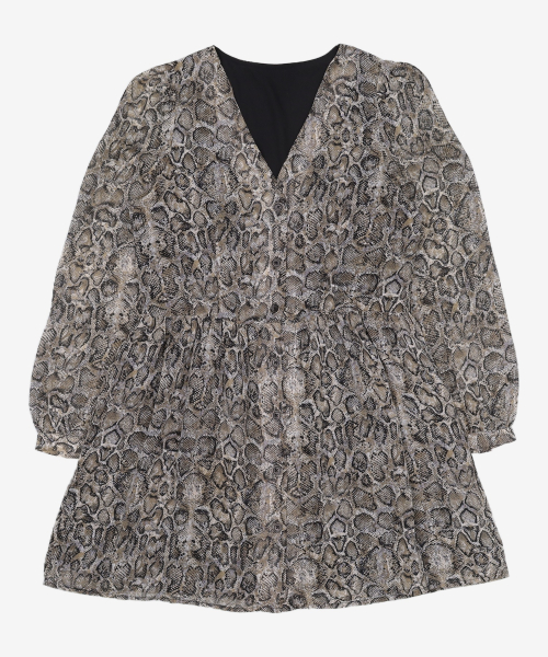 그레이 파이톤 버튼업 셔링 브이넥 미디 원피스 (119871AYB3) M