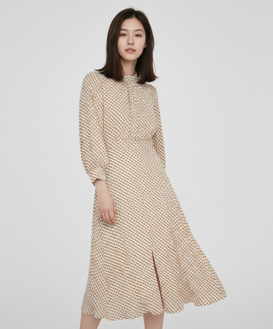 기하학 패턴 하이넥 롱 원피스 MIWOWBT11B S