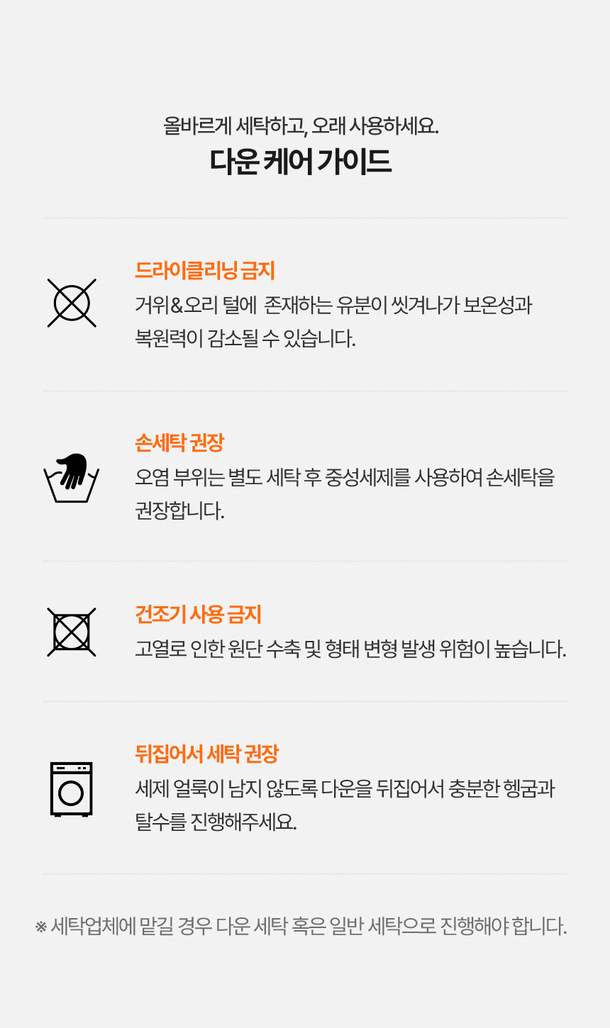 | 취급시 주의사항 | 오염.수분(비누) 땀 등이 묻은 상태로 방치하시면 변색이나 형태변형의 원인이 됩니다. |