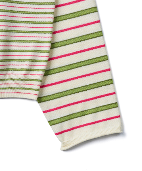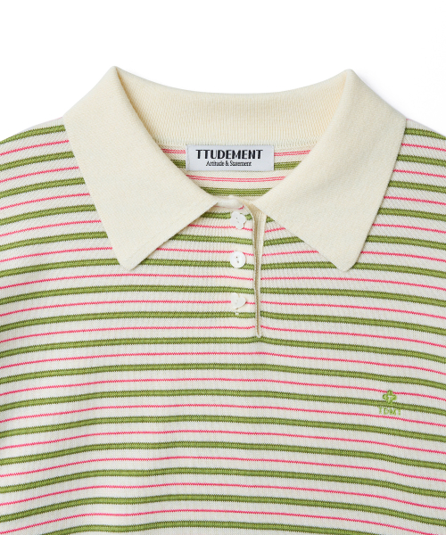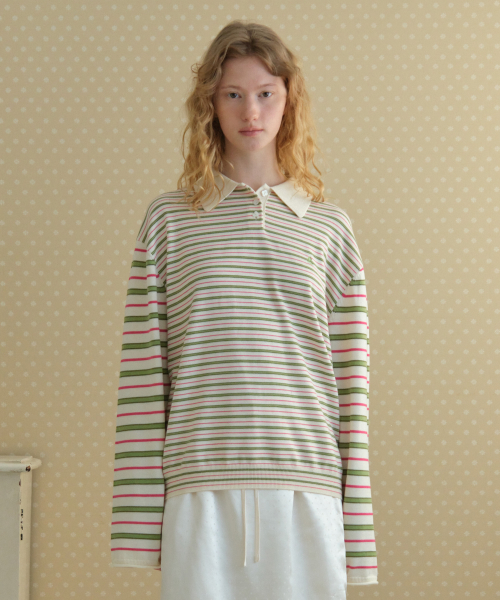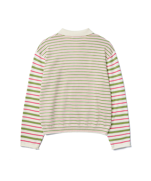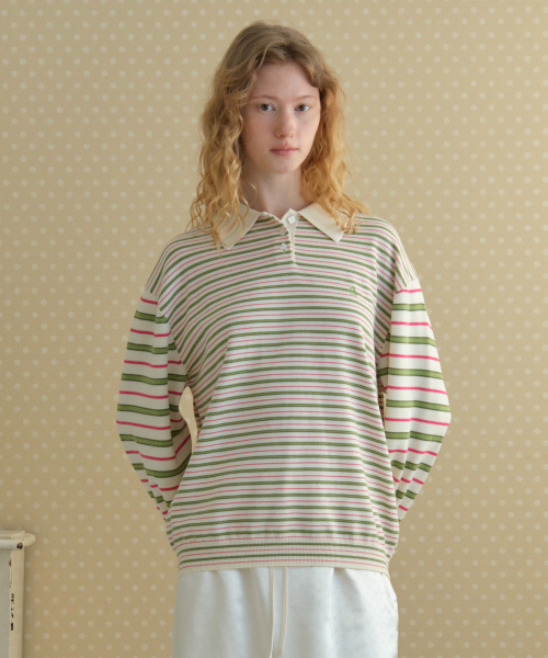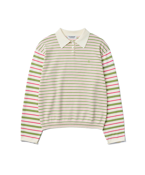 STRIPE LONG SLEEVE POLO KNIT_IVORY