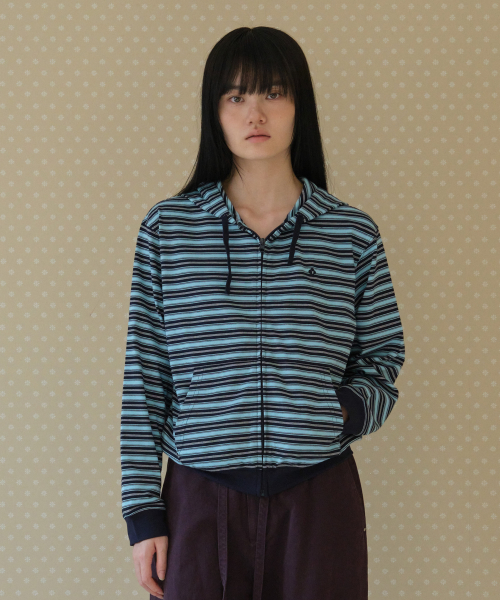 STRIPED CLOVER HOODED ZIP-UP BLUE STRIPE