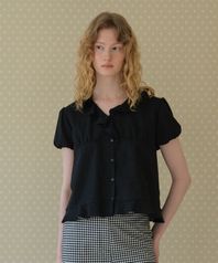 [쁨이 PICK] SHORT-SLEEVE BLOUSE WITH RUFFLED COLLAR_BLACK