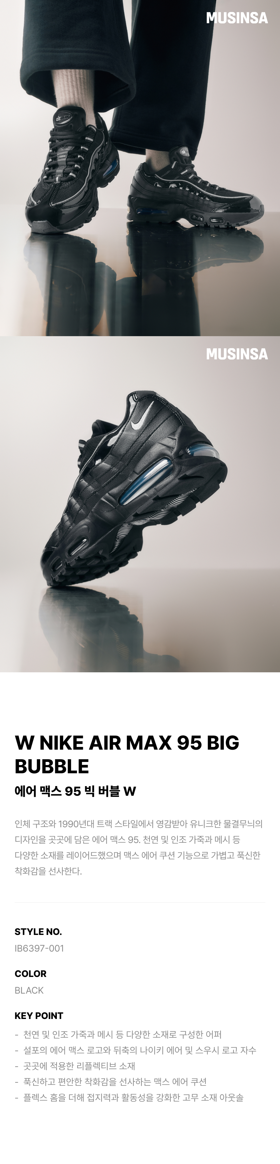 에어 맥스 95 빅 버블 W - 블랙:리플렉트 실버:화이트:메탈릭 실버 / IB6397-001