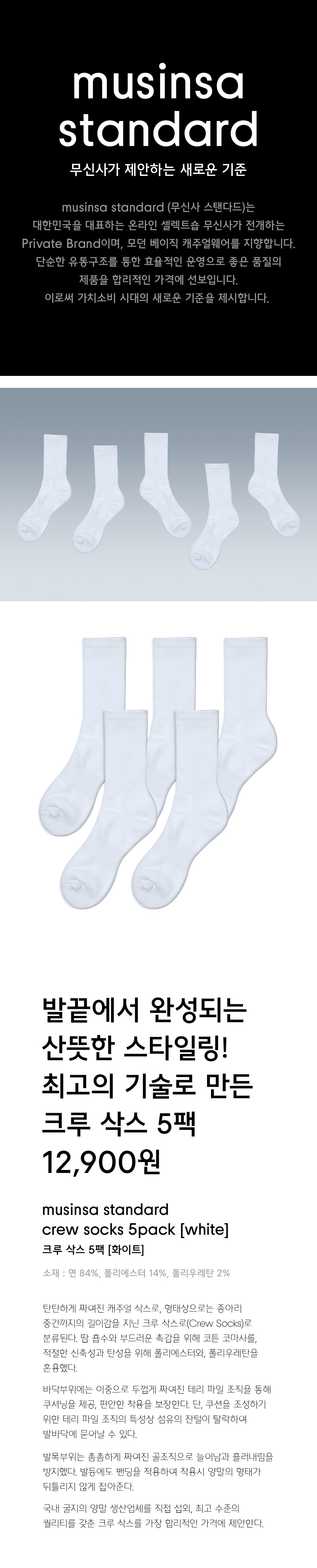 무신사 스탠다드(MUSINSA STANDARD)는 대한민국을 대표하는 온라인 패션 스토어 무신사가 전개하는 자체상표(Private Brand)이며, 모던 베이식 캐주얼웨어를 지향합니다. 단순한 유통구조의 효율적인 운영으로 좋은 품질의 제품을 합리적인 가격에 선보입니다. 가치소비 시대의 새로운 기준을 제시합니다.