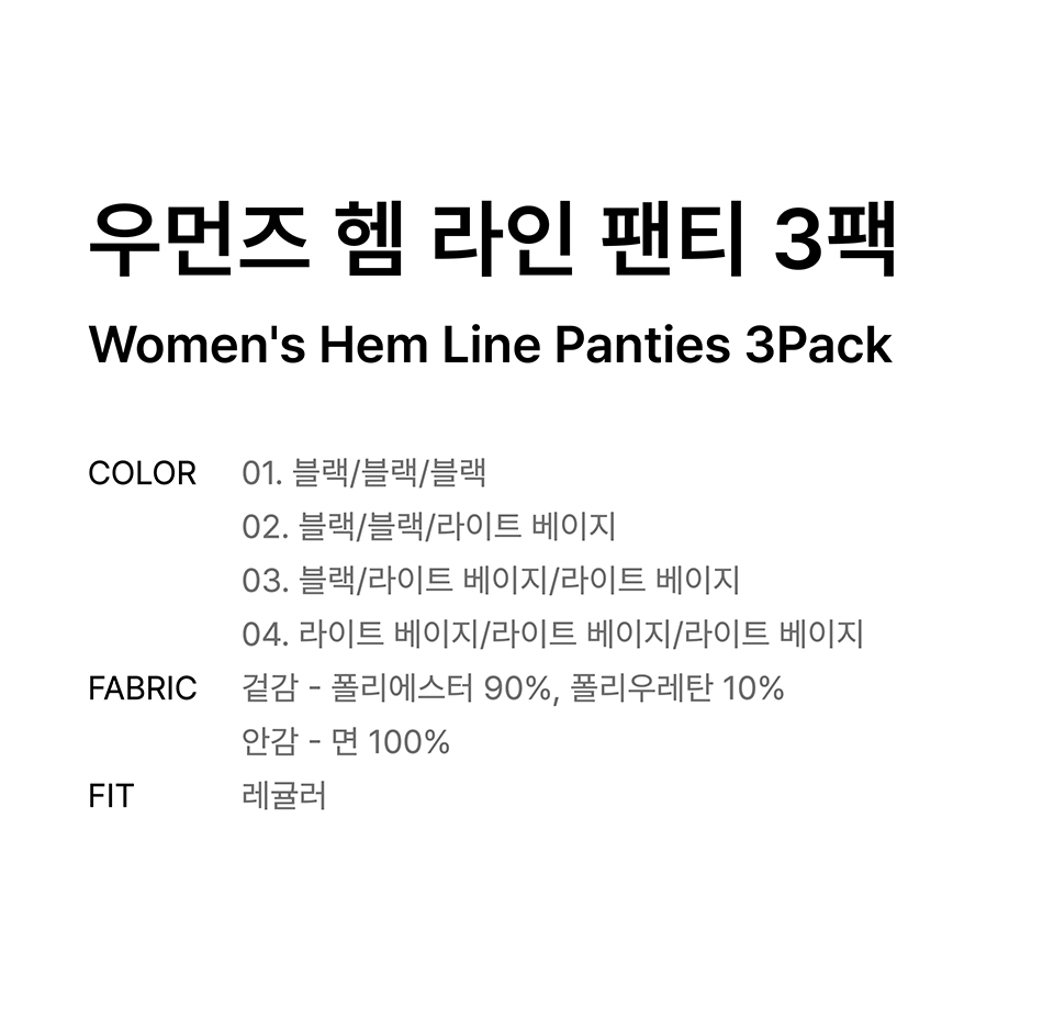 우먼즈 헴 라인 팬티 3팩