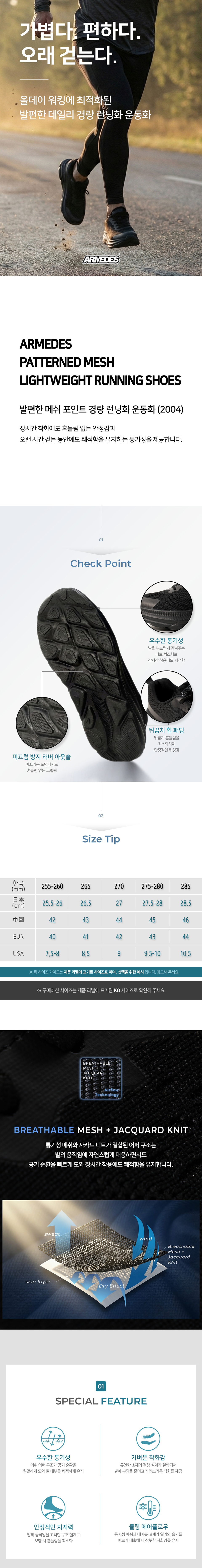 발편한 메쉬 포인트 경량 런닝화 AR-2004