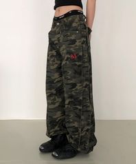 카브 사이드 핀턱 카모 와이드 코튼 팬츠 남녀공용