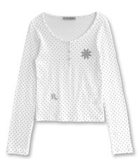 리플렉티브 도트 헨리넥 롱슬리브_아이보리