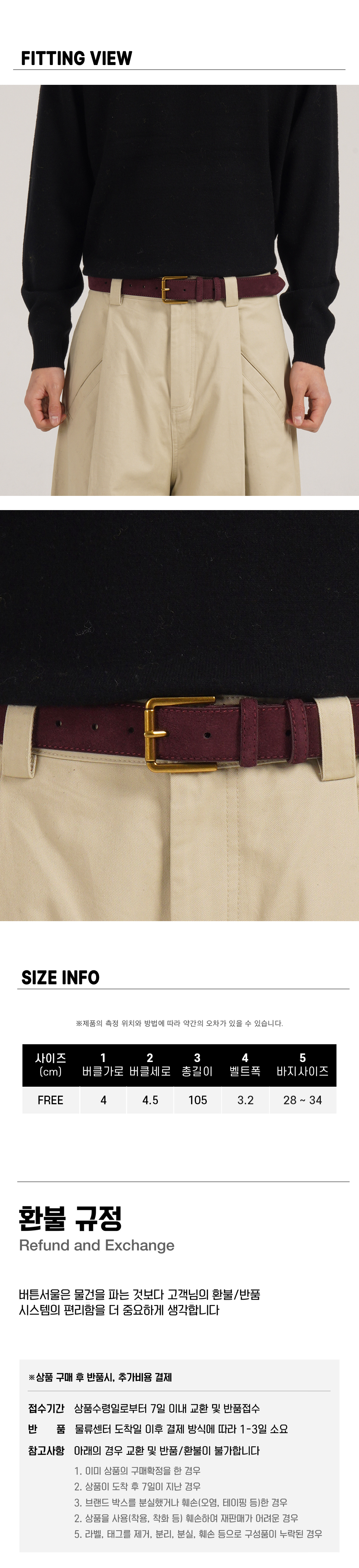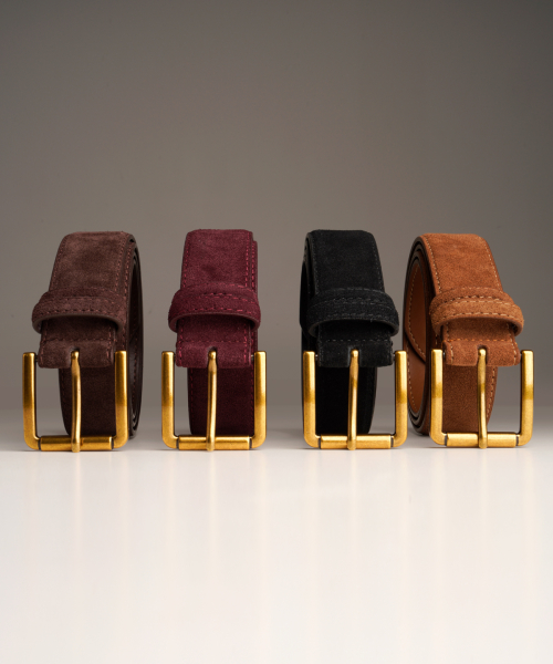 미니멀 스퀘어 스웨이드 벨트 (소가죽/와인)