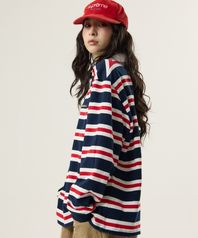 아이비 스트라이프 럭비 카라 셔츠 레드