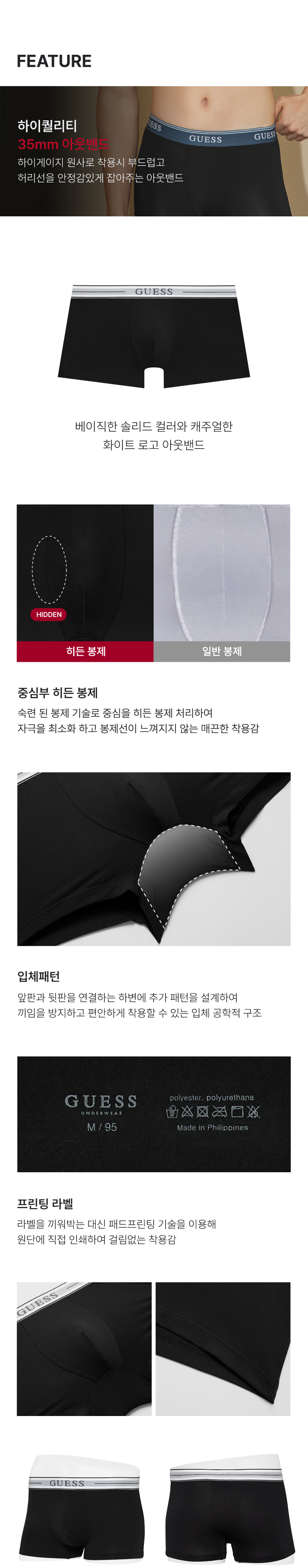 게스 언더웨어(GUESS UNDERWEAR)는 게스(GUESS)의 디자인에 한국인 체형에 맞춘 테크놀로지를 개발, 결합하여 뛰어난 품질의 언더웨어를 합리적인 가격에 제시합니다.