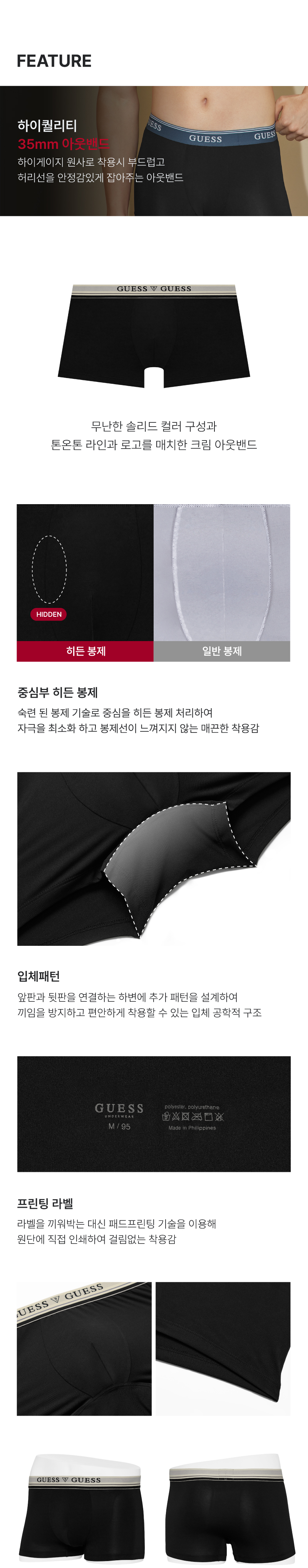 게스 언더웨어(GUESS UNDERWEAR)는 게스(GUESS)의 디자인에 한국인 체형에 맞춘 테크놀로지를 개발, 결합하여 뛰어난 품질의 언더웨어를 합리적인 가격에 제시합니다.