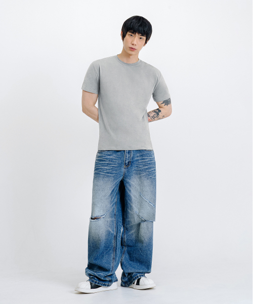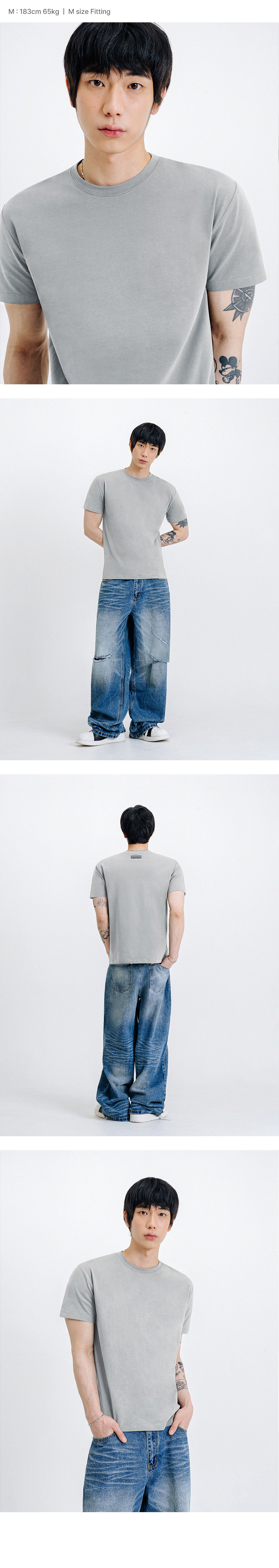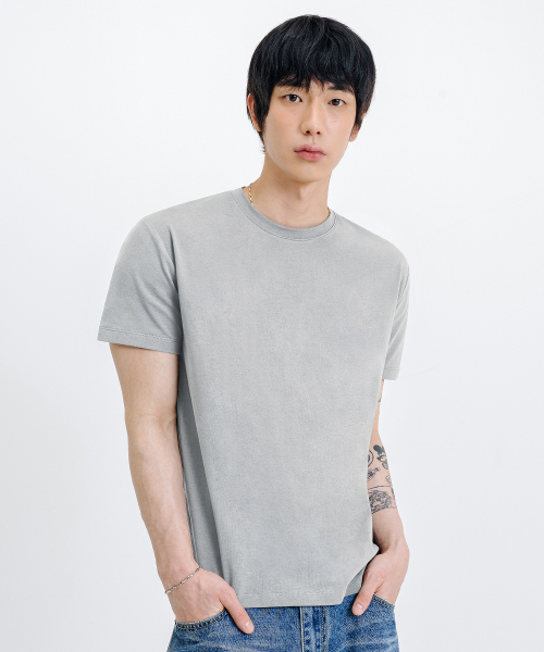 세미 크루넥 머슬핏 무지 반팔 티셔츠 [그레이]