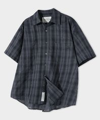 체크 오버핏 반팔 셔츠 [차콜]
