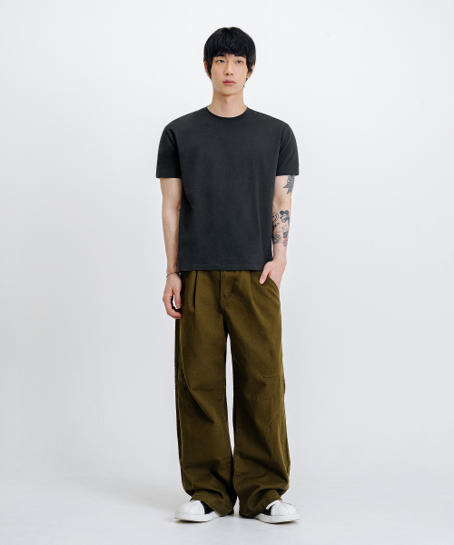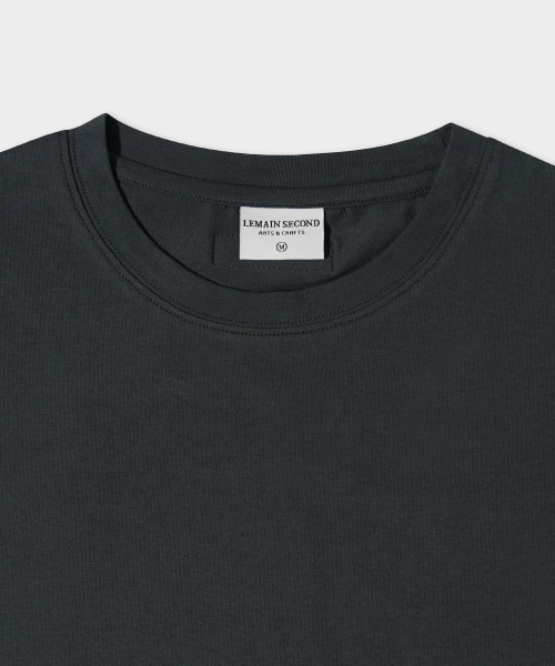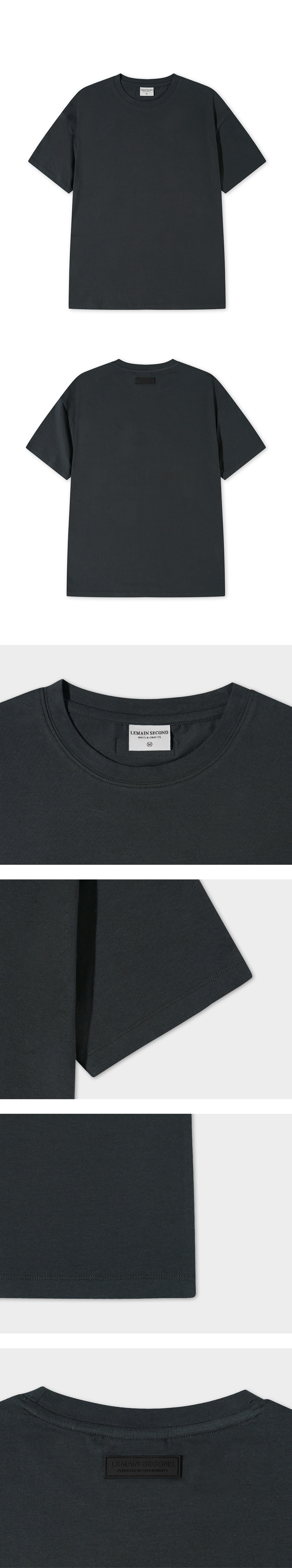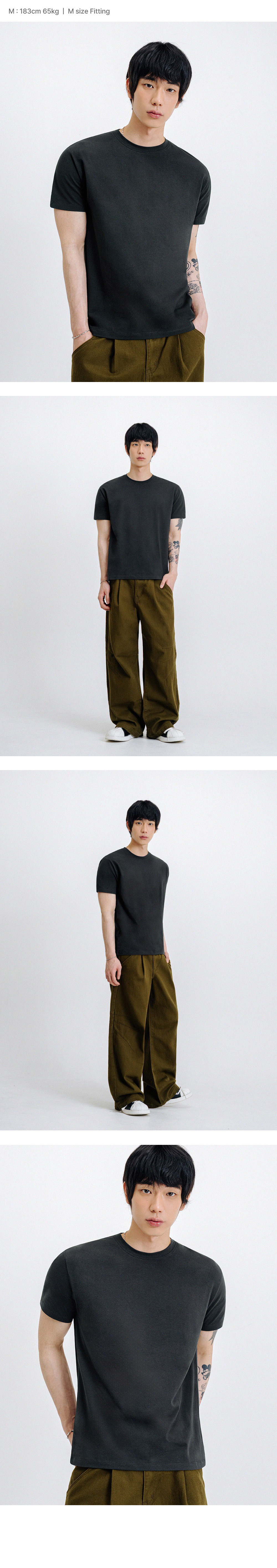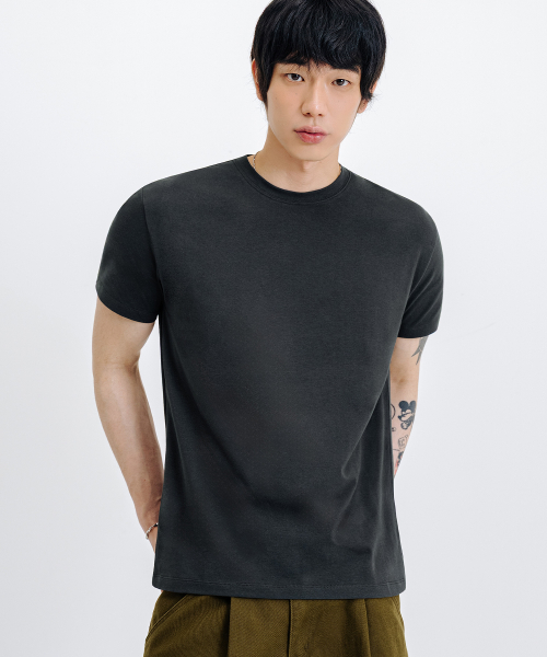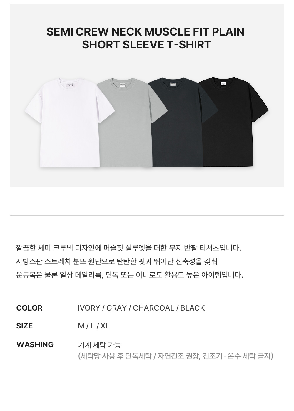 세미 크루넥 머슬핏 무지 반팔 티셔츠 [차콜]