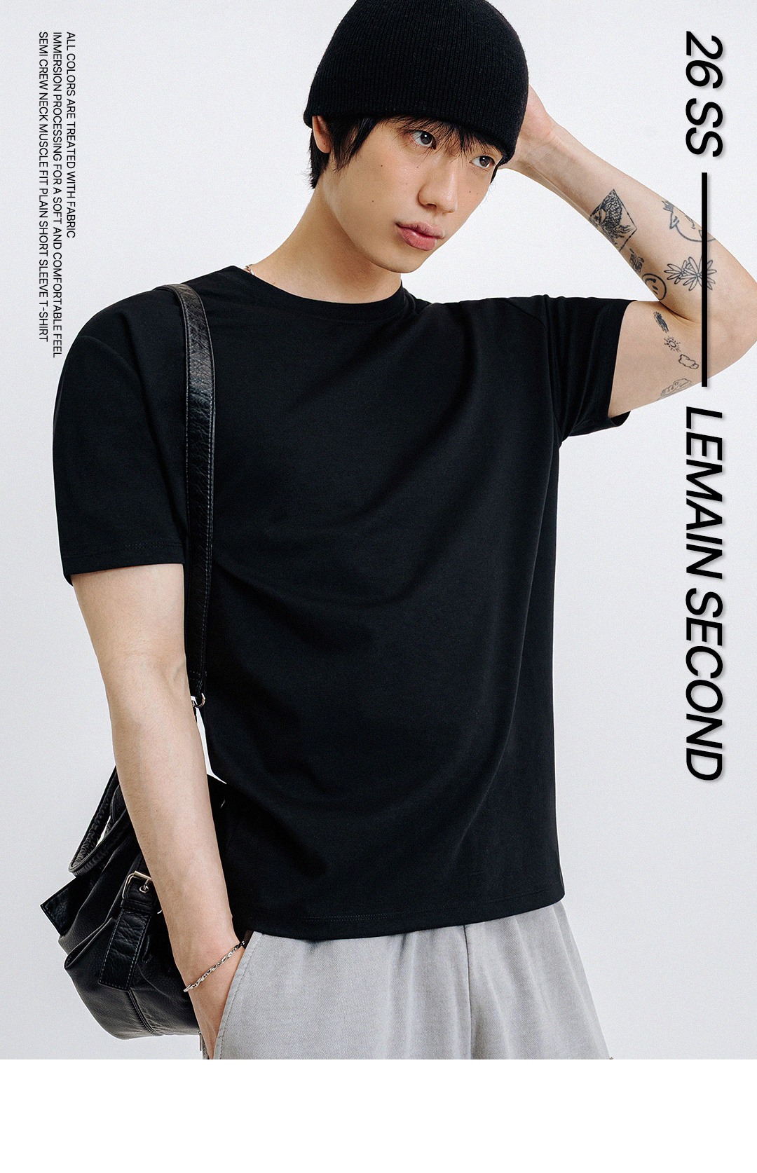 세미 크루넥 머슬핏 무지 반팔 티셔츠 [블랙]
