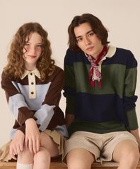 스트라이프 버튼 카라 니트 -2color