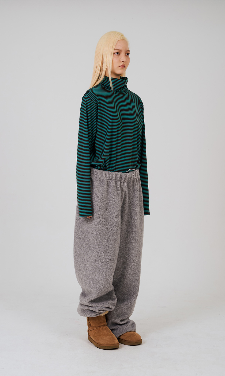 - 부드러운 터치감의 여유 있는 사이즈로 제작된 터틀넥 티셔츠