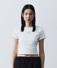 여성 서클 크라운 골지 반팔 티셔츠(WHITE)