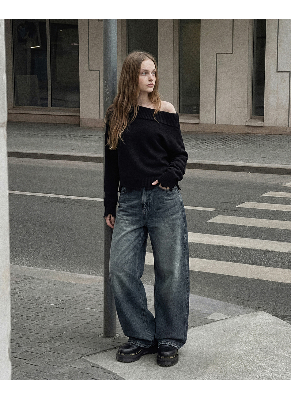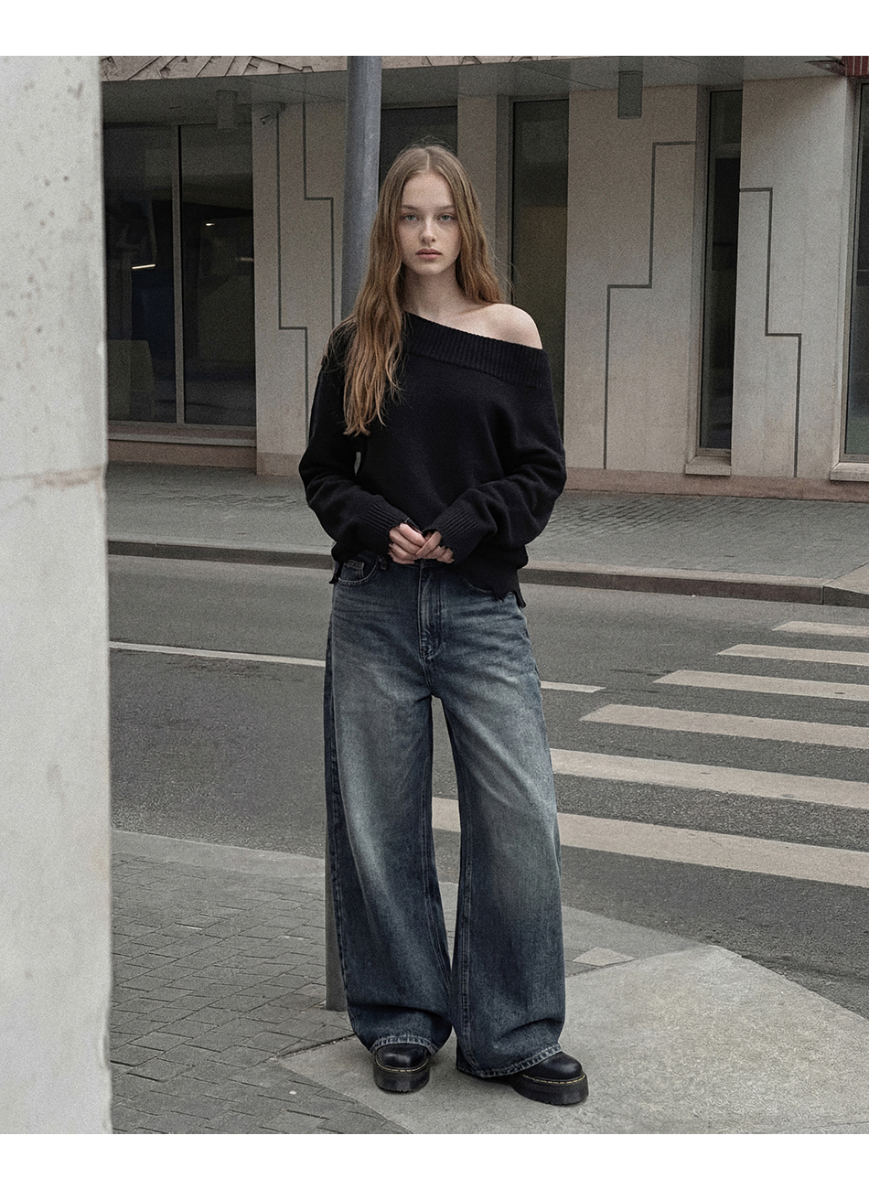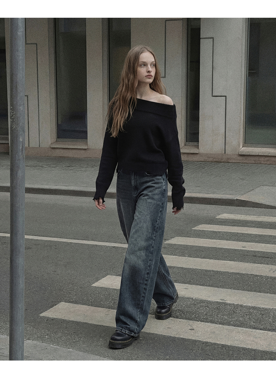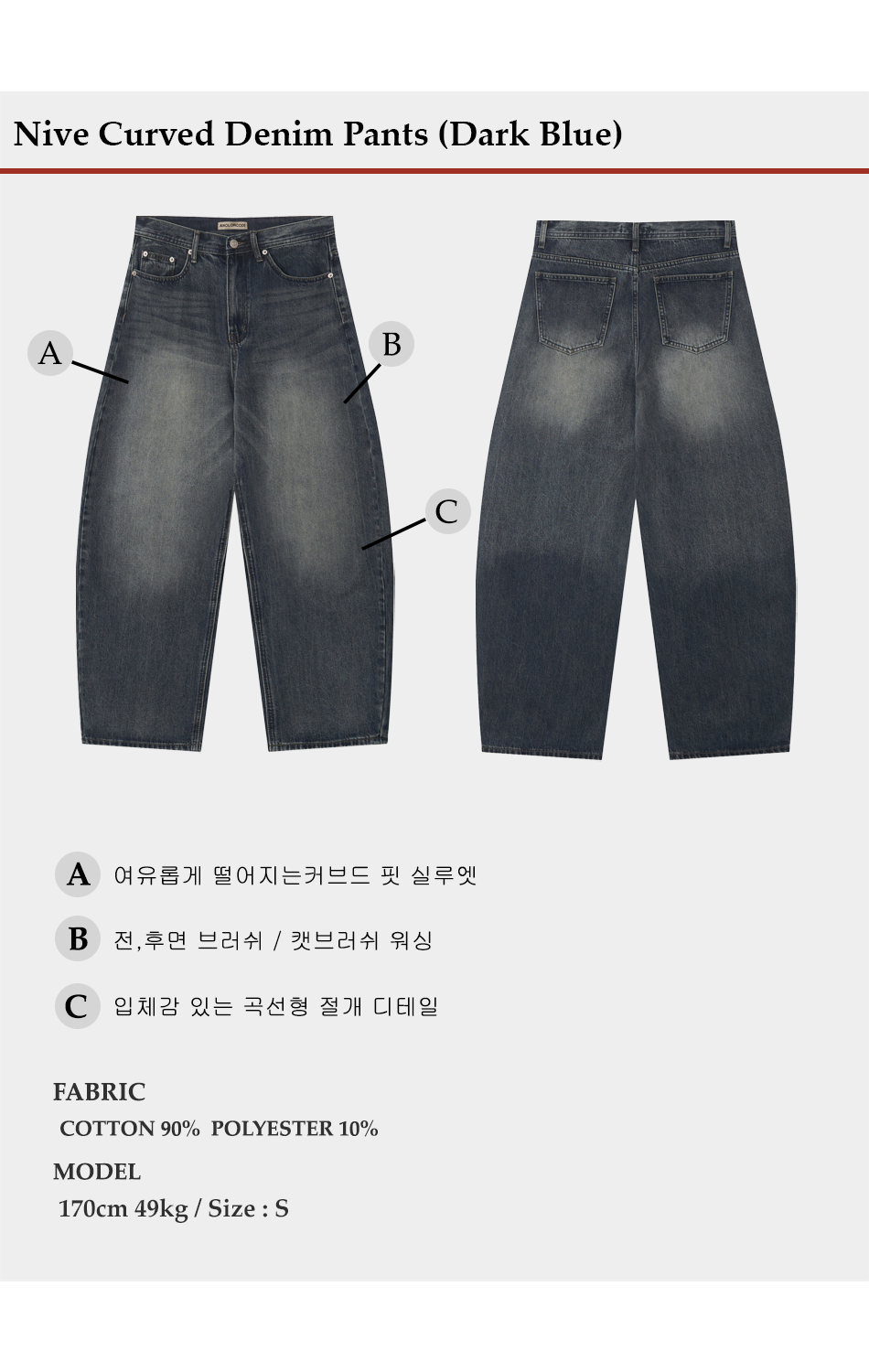 니브 커브드 데님팬츠 (진청)
