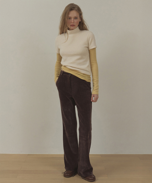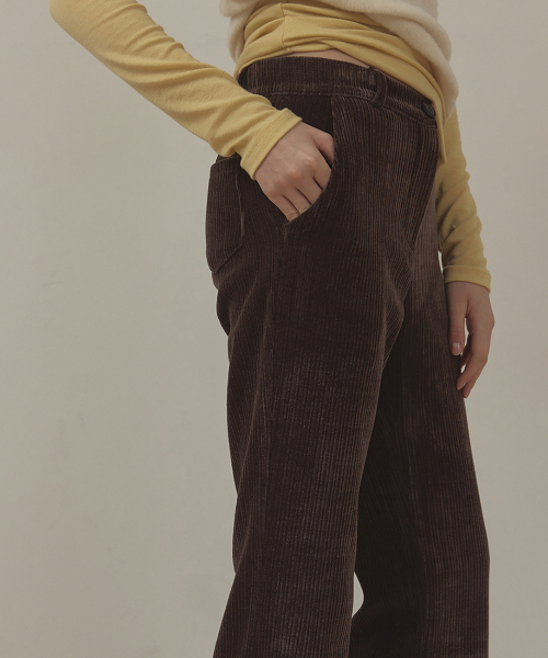 CORDUROY VELVET SPAN BOOTCUT PANTS (BROWN)