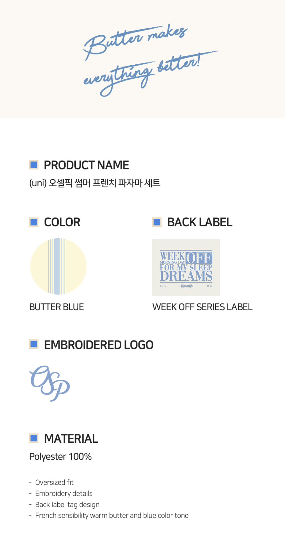 [uni] 프렌치 반팔 파자마 2Size 버터블루