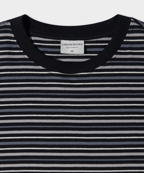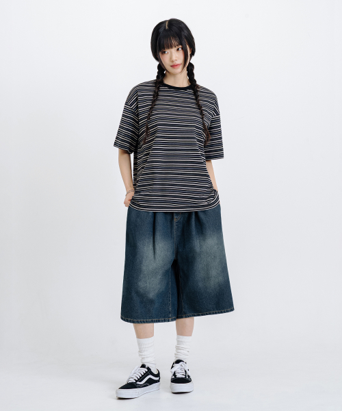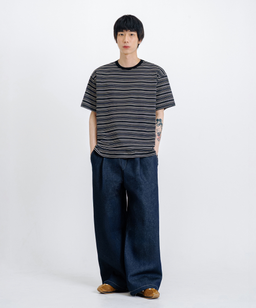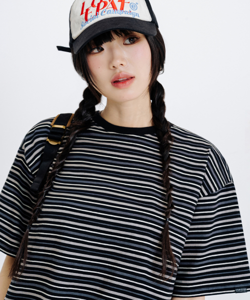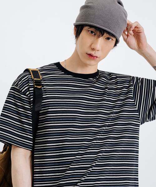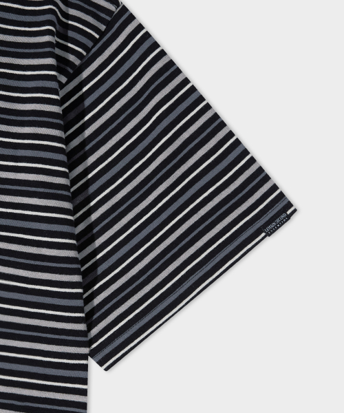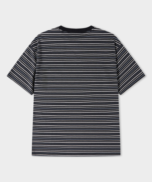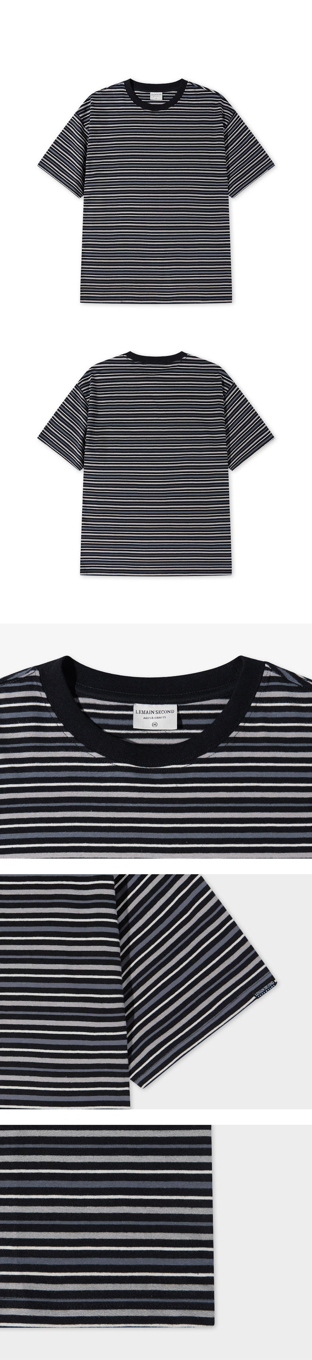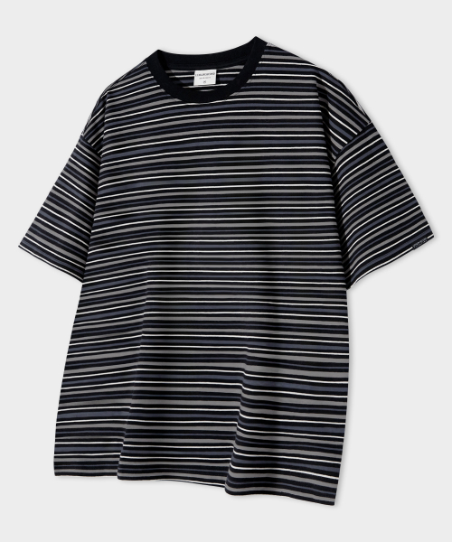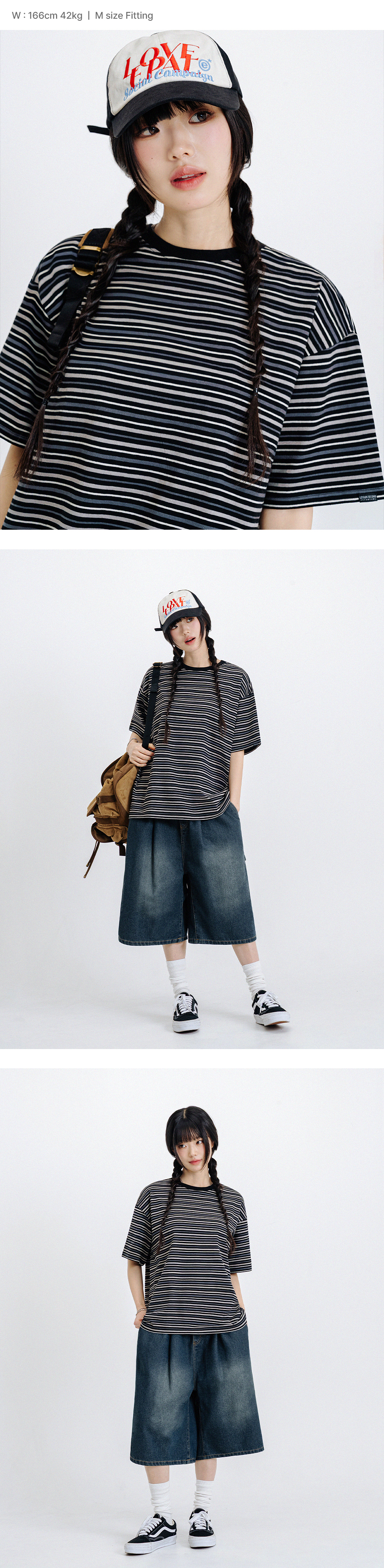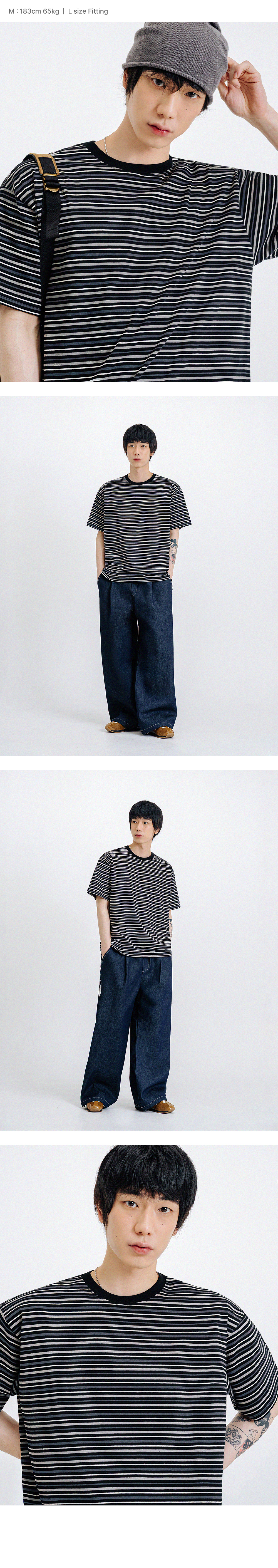 잔 스트라이프 오버핏 반팔 티셔츠 [블랙]