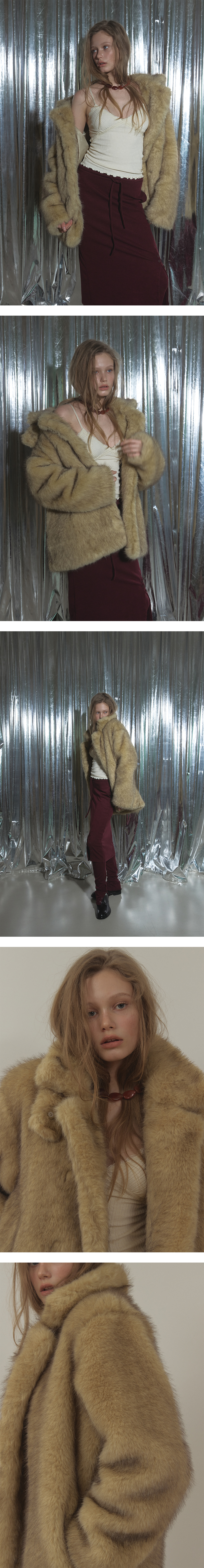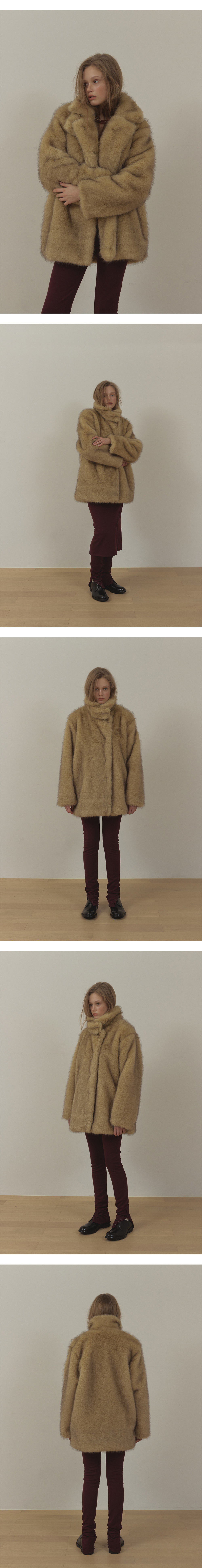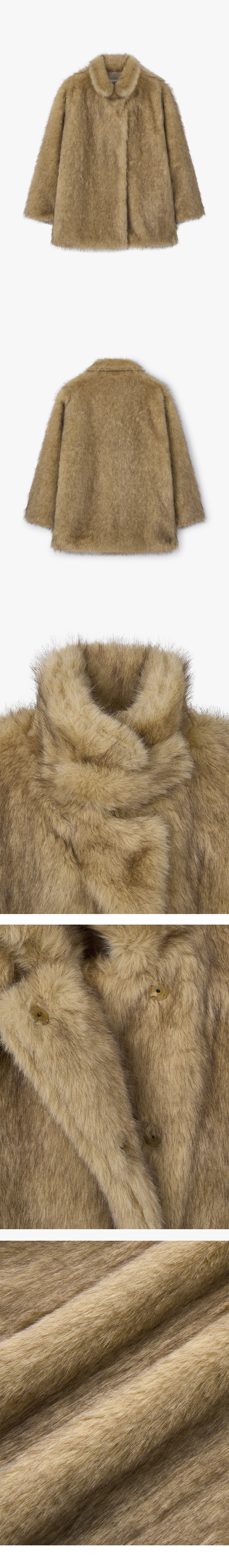 HIGH NECK FAUX FUR JACKET (BEIGE)