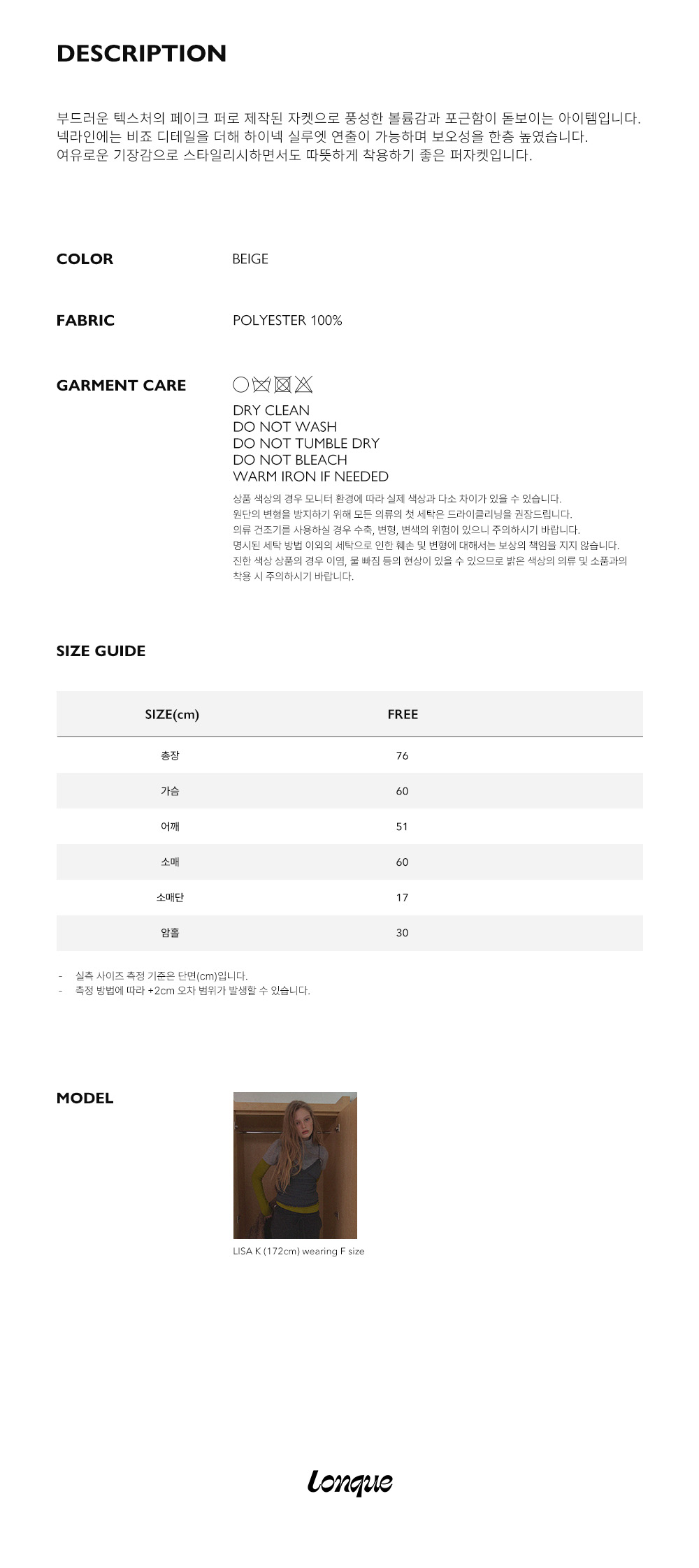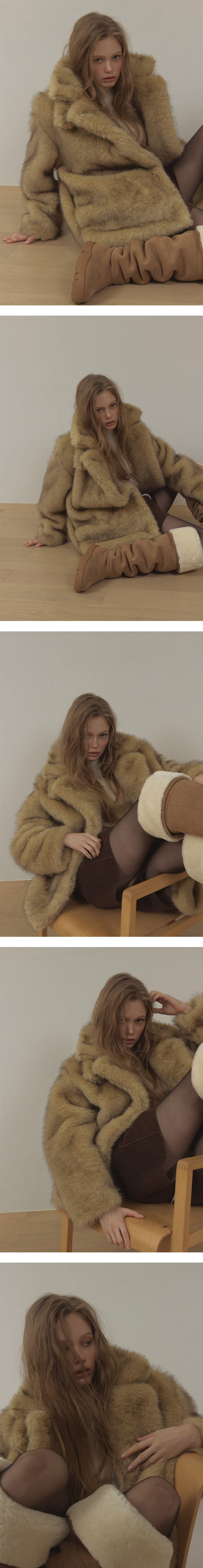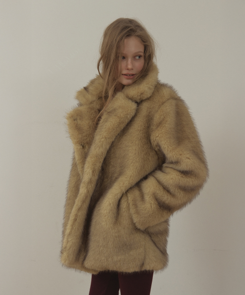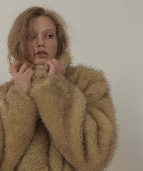 HIGH NECK FAUX FUR JACKET (BEIGE)