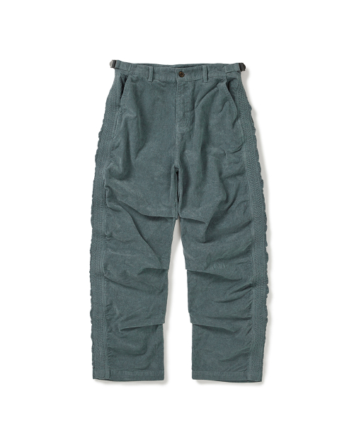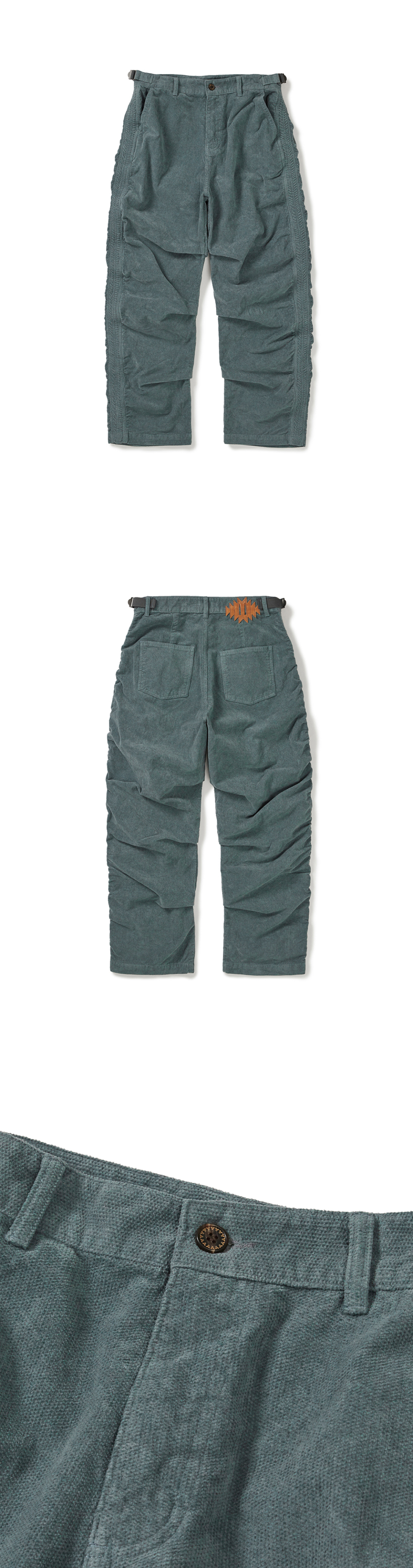 - 사이드심 밴드 스티치와 인심 6개의 턱 구조로 완성된 퍼커링 디테일