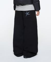 레오파드 트윈 크로스 아플리케 트레이닝 핀턱 와이드 팬츠_블랙