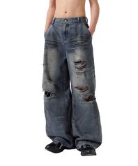 더티 워시드 디스트로이드 데님 팬츠 - BLUE