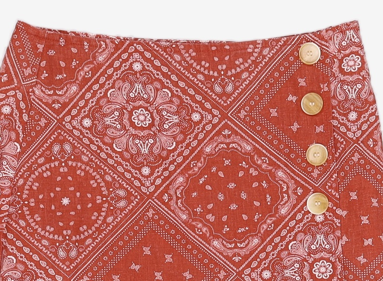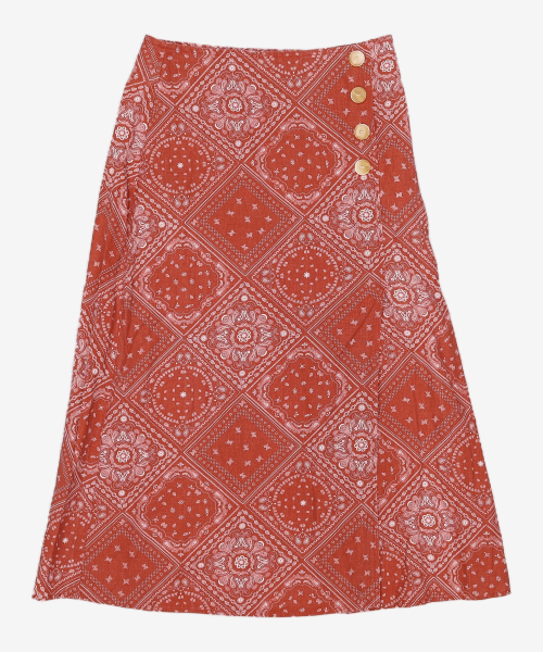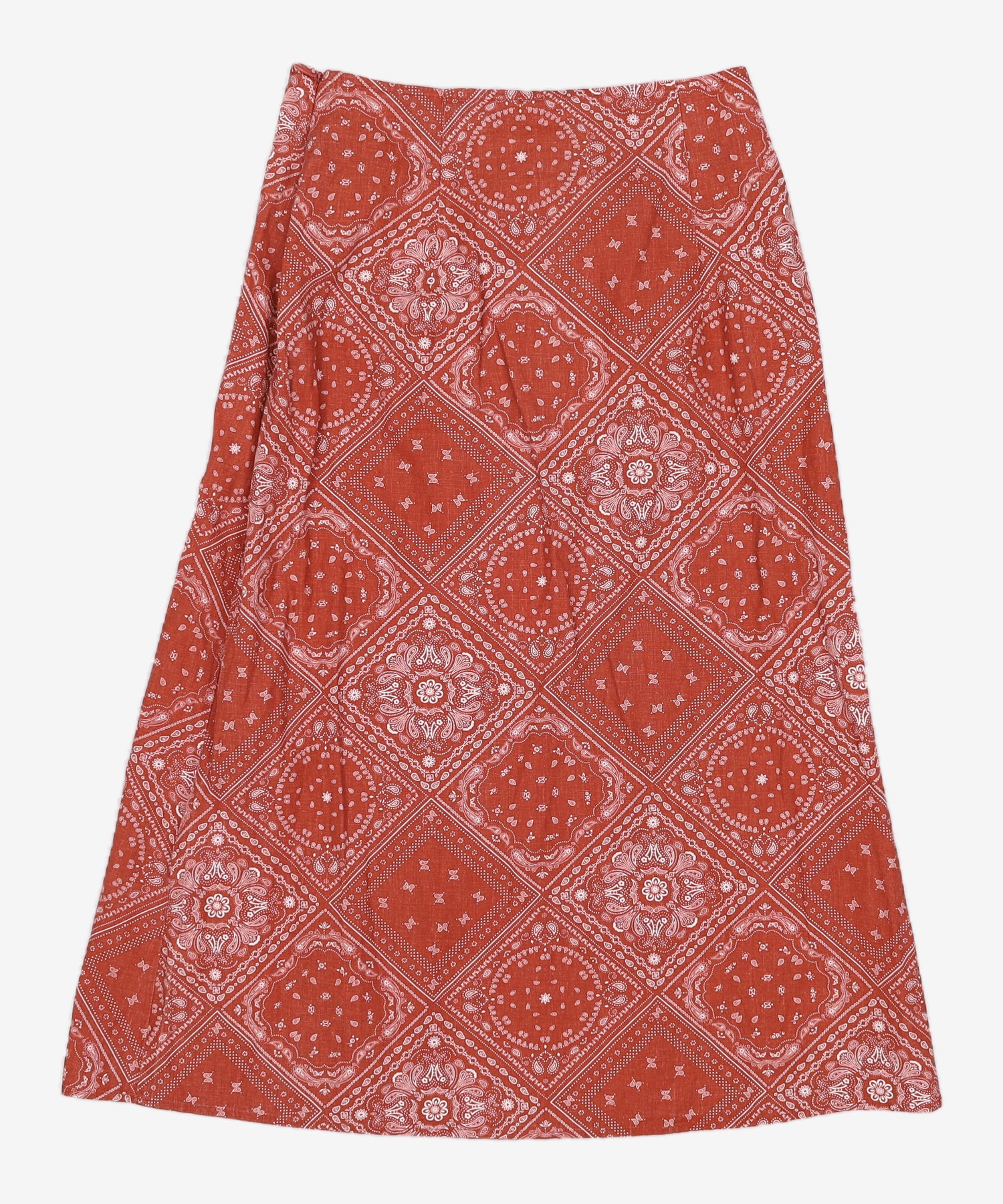 브릭 리넨 블렌디드 반다나 패턴 미디 스커트 (111527AY2C) S